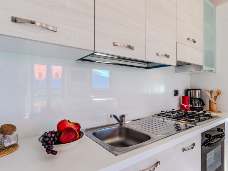 3 rom leilighet 50 m2 i 1st etasje. Lys, vakkert møbler: øverste etasje: (utendørs trapp) stue/spisestue med, spisebord og TV. Utgang til balkongen. 1 rom med, 1 dobbeltseng. Utgang til balkongen. 1 rom med, 1 x 2 køysenger, 1 uttrekkbar seng. Åpent kjøkken (stekeovn, oppvaskmaskin, 4 gassbrennere, brødrister, vannkoker, frys, elektrisk kaffemaskin). Dusj/WC. Gassoppvarming. Balkong, terrasse dekt. Terrassemøbler, balkongmøbler grill, liggestoler (2). Vakker panoramautsikt av vannet og fjellene. Fasiliteter: vaskemaskin, høy barnestol barneseng for barn opp til 2 år. Internett (trådløs LAN [WLAN], gratis). Parkeringsplass (1 Bil). Vennligst merk: røykfri bolig. Max kjæledyr / hund tillatt 1 kjæledyr / hund tillatt. Egen inngang. CIR: 013226-CNI-00007