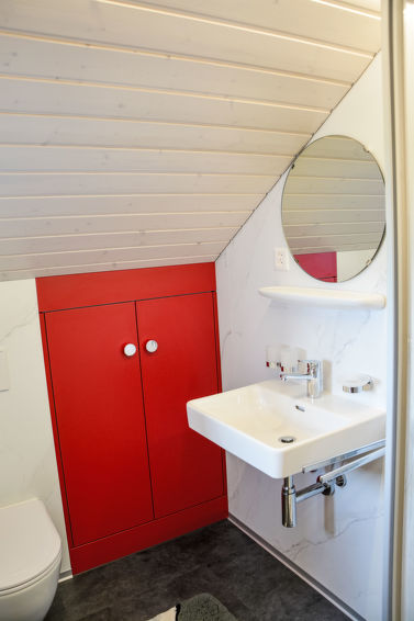 Koselig, rustikk hus på gård "Alpsteinblick", 1'000 m.o.h. Omgitt av enger og jorder. Ovenfor Haslen AI, i en avskildt, roligt, solrikt posisjon, i det grønne, south facing position. Fellesbruk: stor hage med plen og planter, naturlig hage. Sitteplass, grillplass, lekeplass. I huset: sykkelrom, skirom, sentralvarme, vaskemaskin, tørketrommel (for felles bruk ekstra). Tilgang til motor til huset, untatt på vinteren 200 m. Kjettinger nødvendige på vinteren, firhjulsdrift på bil anbefales. Parkering ved huset, på vinteren 200 m. Butikk 6 km, daglivarehandel 6 km, supermarked 6 km, restaurant 300 m, bakeri 6 km, togstasjon "Teufen AR" 6 km, utendørs svømmebasseng 6 km, svømmehall 6 km. Kabelbane 12 km, skiheis 12 km, skibakker 12 km, akebane 6 km. Attraksjoner i nærheten: Appenzell 6 km. Velkjente skiområder kan lett nåes: Schwägalp 25 km. Please note: bil anbefales.