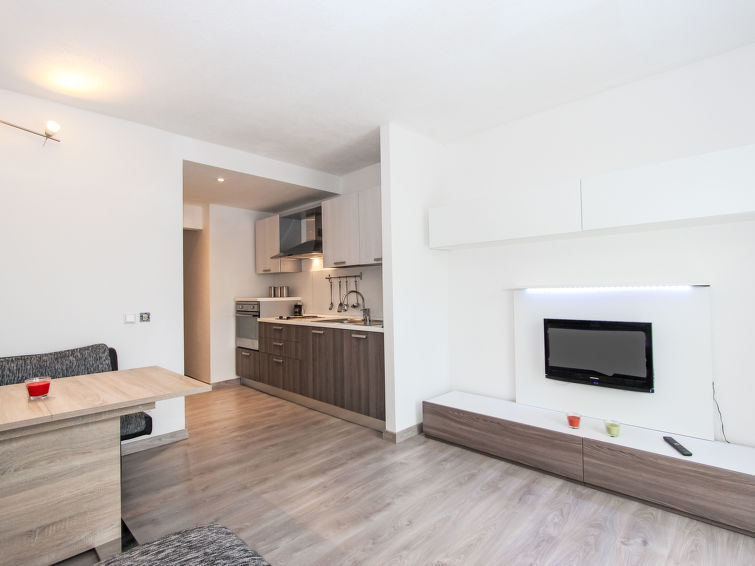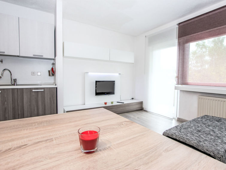 2 rom leilighet 33 m2 i 2nd etasje. Fullstendig renovert i 2019, moderne og smakfullt møbler: inngang. 1 litet rom med, 2 x 2 køysenger. Stue/spisestue med, 1 dobbel sovesoffa, spisehjørne og kabel-TV (flatskjerms TV). Utgang til balkongen. Åpent kjøkken (2 kokeplater, stekeovn). Dusj/WC. Balkong 8 m2. Vennligst merk: røykfri bolig. Max kjæledyr / hund tillatt 1 kjæledyr / hund tillatt. Røykvarsler. Vennligst merk: badet er smalt.