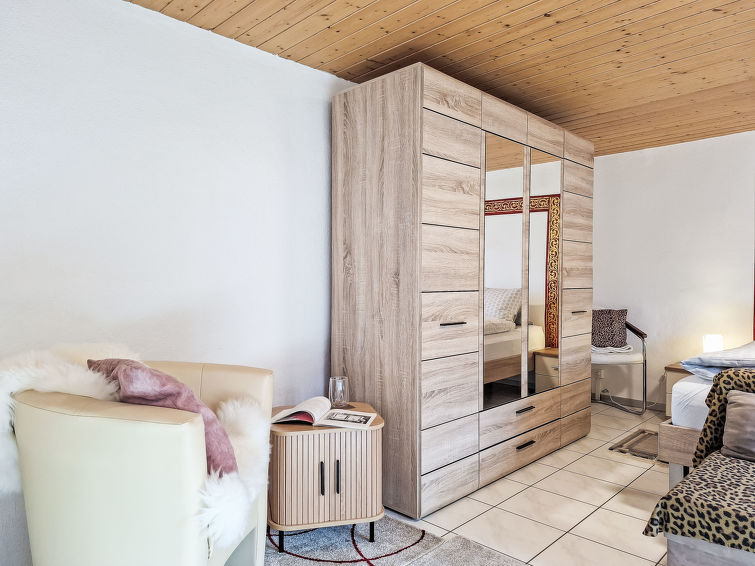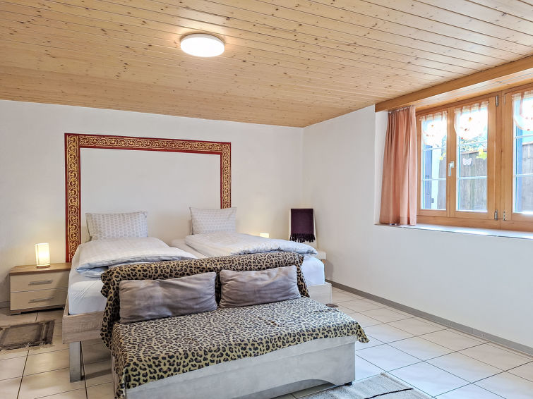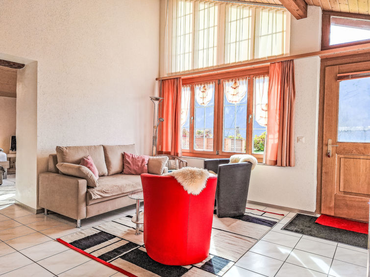 "Am Brienzersee", 2 rom leilighet 54 m2, på bakkeplan. Romlig og lys, komfortabelt og smakfullt møbler: åpen stue/spisestue 20 m2 med, 1 dobbel sovesoffa (1 x 160 cm, lengde 200 cm), kabel-TV, radio og CD-spiller. Utgang til sitteplass i hagen. 1 åpent rom med, 1 dobbeltseng (2 x 90 cm, lengde 200 cm), 1 uttrekkbar seng, TV og flatskjerms TV. Åpent kjøkken (stekeovn, oppvaskmaskin, 4 keramiske kokeplater, brødrister, vannkoker, mikrobølgeovn, elektrisk kaffemaskin, Internet(Nespresso), ekstra, raclettegrill (ost)) med, spisebord. Dusj/WC. Naturstengulv. Sitteplass i hagen 15 m2, beliggenhet mot sør og beliggenhet mot vest, hage, plen 40 m2. Terrassemøbler, liggestoler (2). Hærlig panoramautsikt av vannet og fjellene. Fasiliteter: strykejern, barneseng for barn opp til 2 år, hårføner. Internett (trådløs LAN [WLAN], gratis). Parkeringsplass. Vennligst merk: røykfri bolig. Max kjæledyr / hund tillatt 1 kjæledyr / hund tillatt. Brannslukkningsapparat.