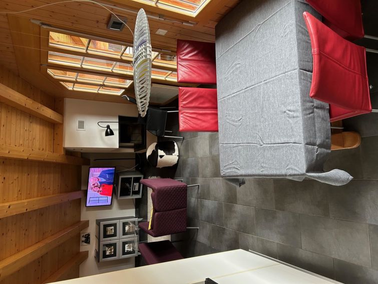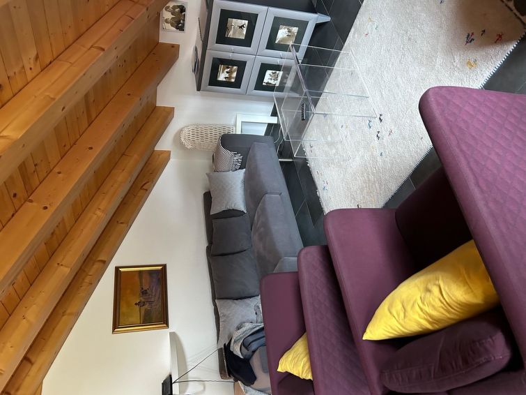 75 m2. mere informasjon fra eieren: 3-room apartment (75m2) on the 2nd floor, chalet with 6 apartments. Bath/toilet. 2 bedrooms and gallery with 5 beds in total. Linen available. Kitchen with oven, refrigerator, dishwasher. Living-dining room with fire place, cable TV, dvd-player, radio, phone, WLAN. Balcony with garden furniture, garage, washing machine, room for ski equipment, central heating. Pets are not allowed.