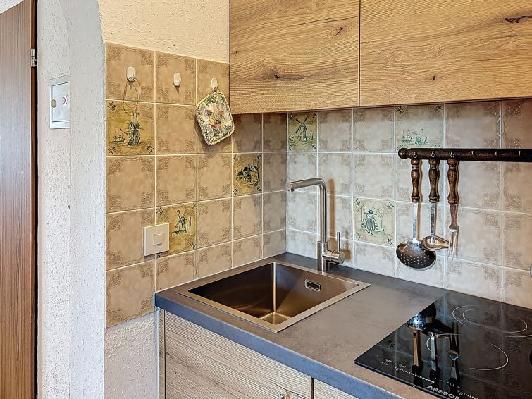 2 rom leilighet 38 m2, på bakkeplan. Koseligt møbler: stue/spisestue 18 m2 med, 1 sovesoffa (140 cm, lengde 200 cm), satelit-TV (flatskjerms TV). 1 rom 12 m2 med, 1 dobbeltseng (180 cm, lengde 190 cm). Kjøkkenkrok (2 kokeplater, elektrisk kaffemaskin). Dusj/WC, dobbel servant. Gassoppvarming. Liten terrasse 8 m2 delvis dekt, plen 40 m2. Terrassemøbler, liggestoler (2). Vakker utsikt av vannet og fjellene. Vennligst merk: røykfri bolig. Røykvarsler, brannslukkningsapparat.