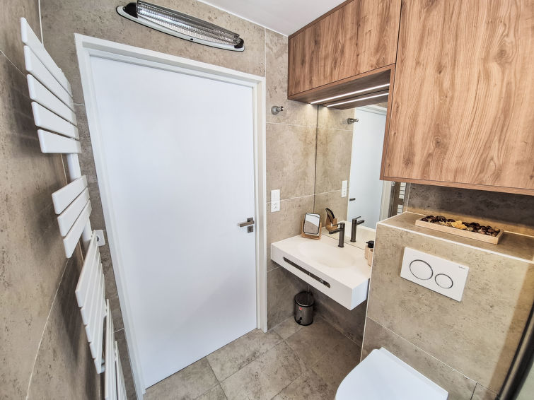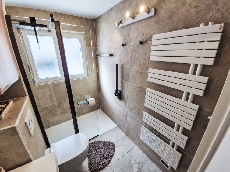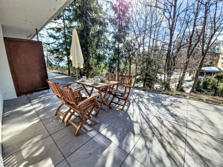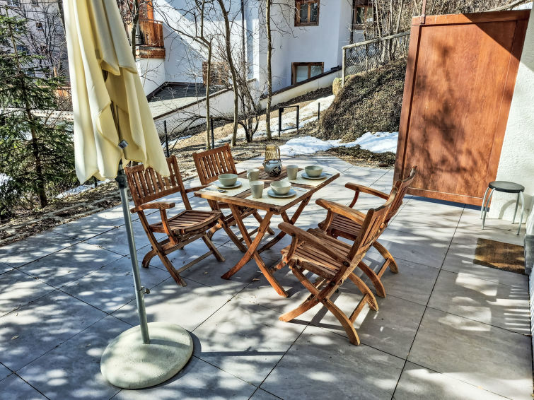"Andrea B", 1 rom leilighet 35 m2, på bakkeplan. Stue/spisestue med, 1 sovesoffa (80 cm, lengde 187 cm), 1 dobbel sovesoffa (137 cm, lengde 193 cm), kabel-TV. Kjøkken (3 kokeplater, ovn, mikrobølgeovn, elektrisk kaffemaskin, Internet(Nespresso), ekstra). Bad/bidé/WC. Sitteplass i hagen, beliggenhet mot sør. Terrassemøbler. Delvis utsikt av fjellene og skogen. Fasiliteter: hårføner. Internett (trådløs LAN [WLAN], gratis). Vennligst merk: røykfri leilighet. Wall LCD TV Home Cinema (94cm).