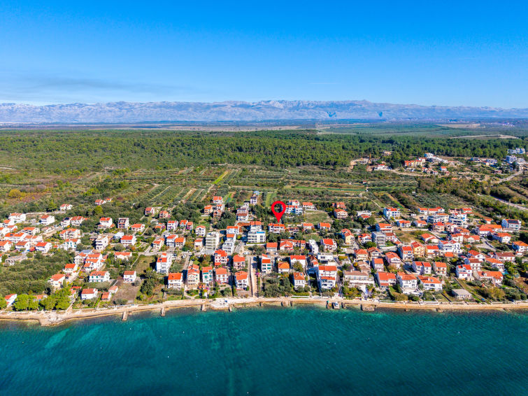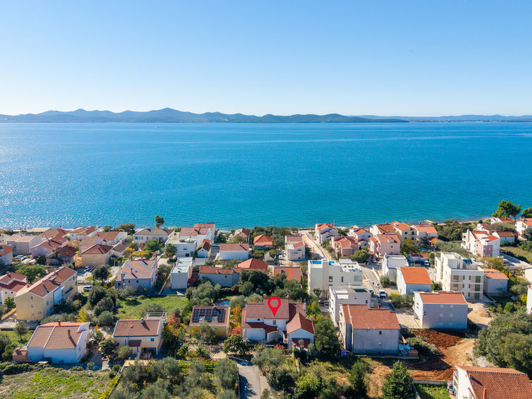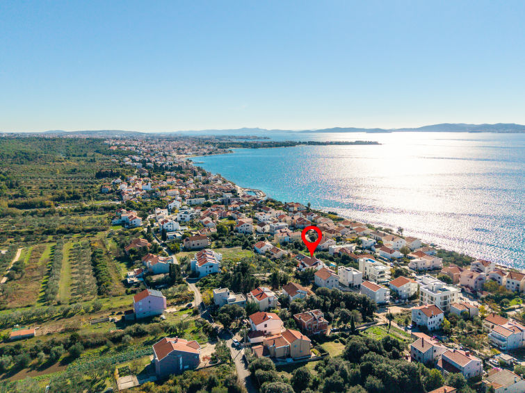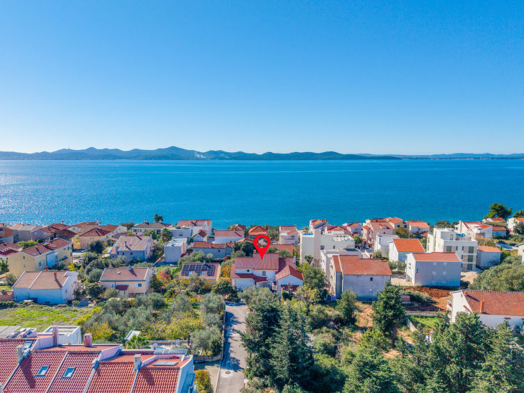 Fin, koselig tremannsbolig "Anica". I området Diklo, 6 km fra sentrum av Zadar, utenfor området, i en roligt, solrikt, høyt posisjon i et boligområde, 150 m fra sjøen, 150 m fra stranden, i det grønne, beliggenhet mot sør. Fellesbruk: tomt 1'000 m2 (inngjerdet), hage med plen og trær, 1 badebasseng firkantet inngjerdet (13 x 6 m, dybde 120- 190 cm dyp, Sesongåpent: 13.Jun. - 19.Sep.) med innbygdetrapper. Utendørs dusj, grill, lekeplass (huske), Underholdning av bassenget av eieren/gartneren, parkering ved hbrukt på tomten. Butikk 400 m, restaurant 450 m, småstenstrand 2.5 km, stenstrand 150 m, offentlig badeområde 2.5 km, betonglagt strand 150 m. Tennis, idrettsenter 400 m.