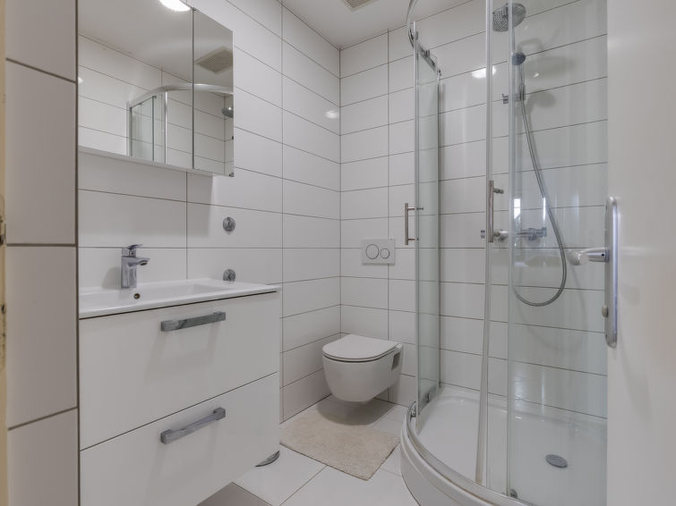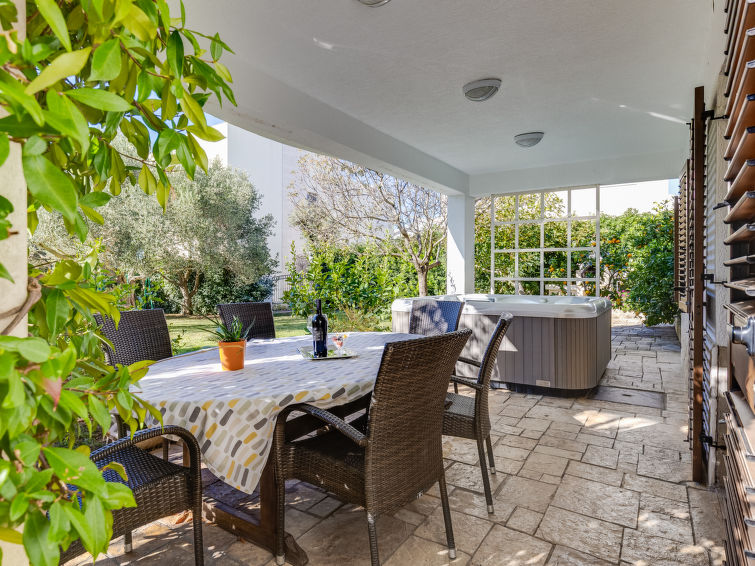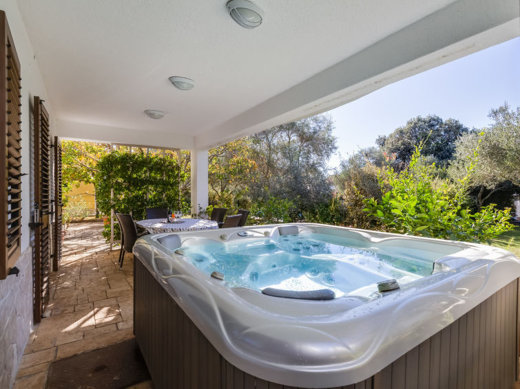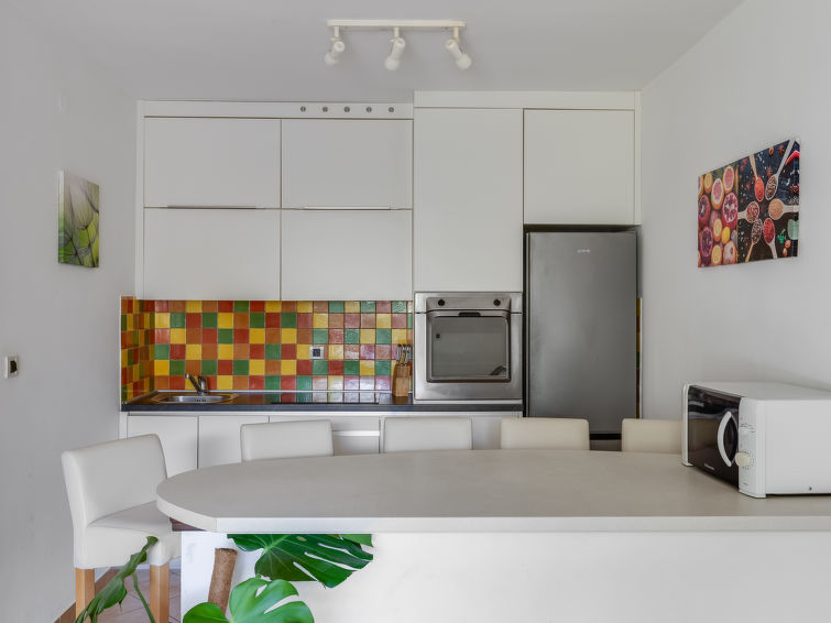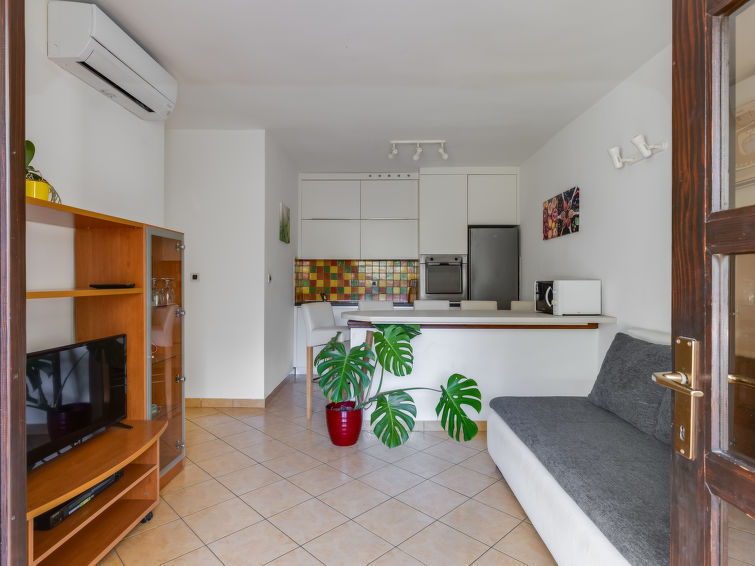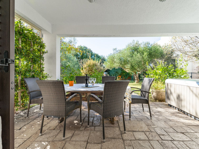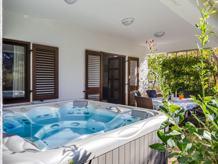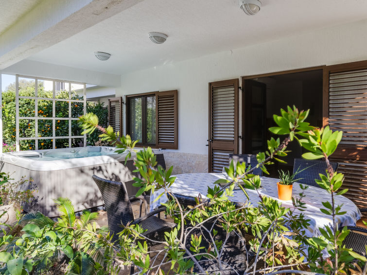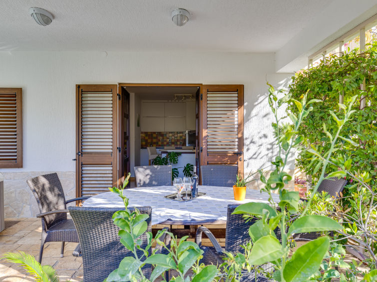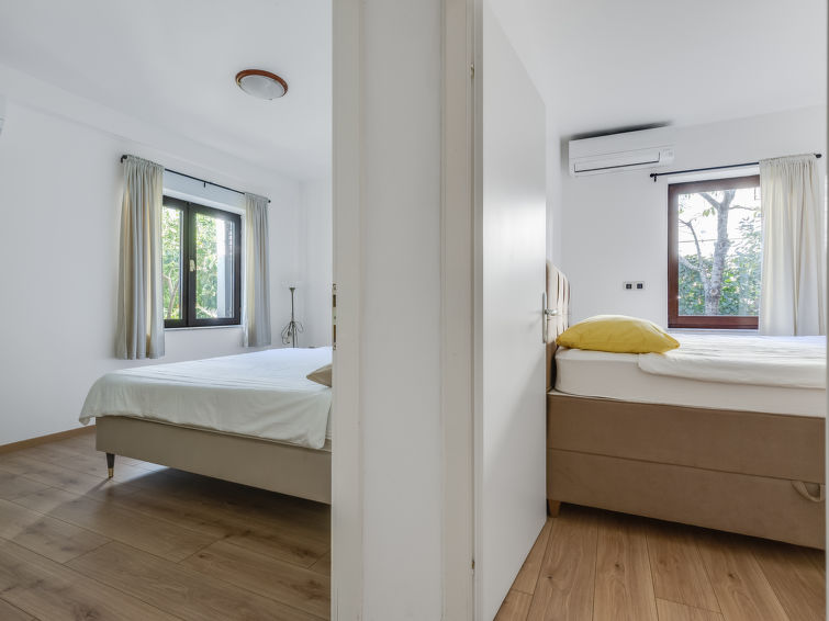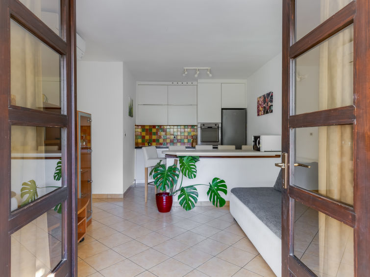 4 rom leilighet 60 m2, på bakkeplan. Vakkert og smakfullt møbler: liten stue/spisestue med, satelit-TV og air-conditioning. Utgang til hagen, til terrassen, til badebassenget. 1 rom med 1 seng og 1 dobbeltseng (180 cm, lengde 200 cm), air-conditioning. 1 rom med, 1 dobbeltseng (160 cm, lengde 195 cm), air-conditioning. 1 rom med 1 seng (90 cm lengde 200 cm), air-conditioning. Åpent kjøkken (oppvaskmaskin, 4 induksjonskomfyr, mikrobølgeovn, frys). 2 dusjer/WC. El-oppvarming. Oppvarmingsalternativ. Stor terrasse 20 m2, dekt, beliggenhet mot sør. Terrassemøbler, liggestoler. Utsikt av svømmebassenget. Fasiliteter: vaskemaskin. Internett (trådløs LAN [WLAN], gratis).