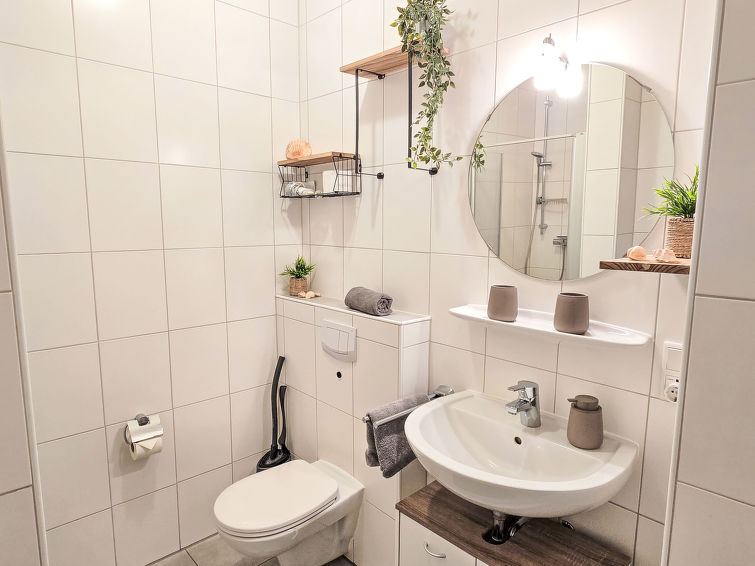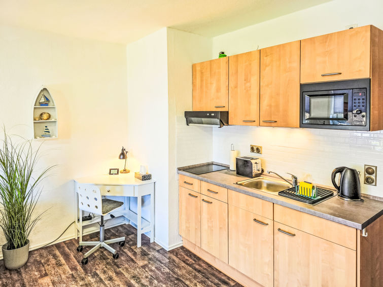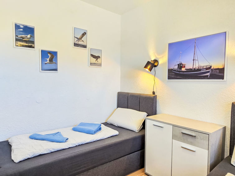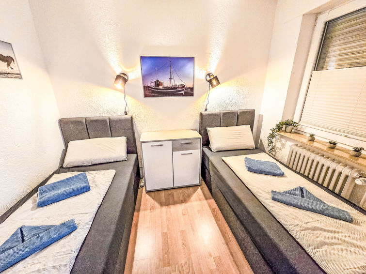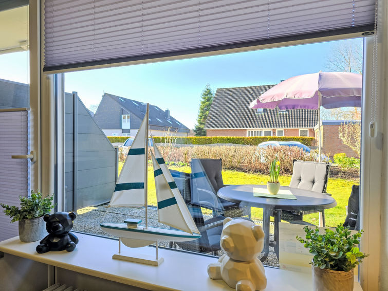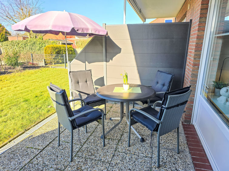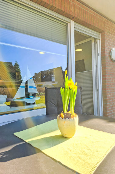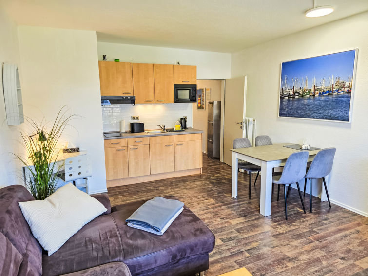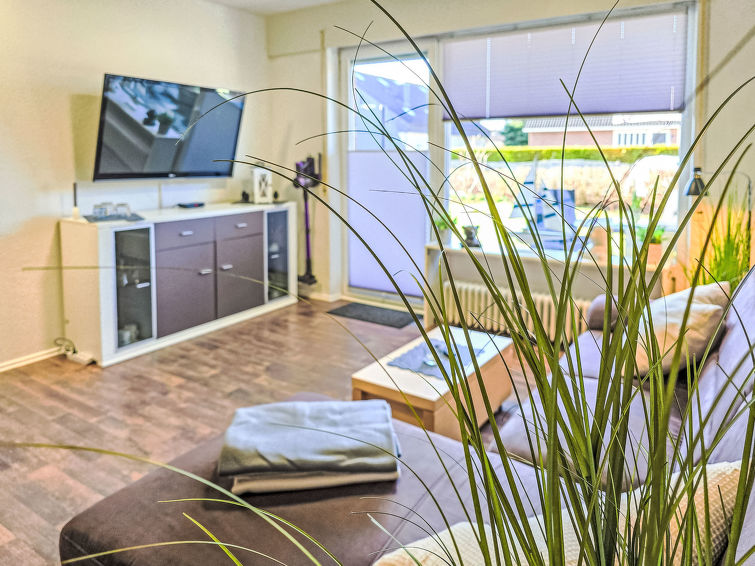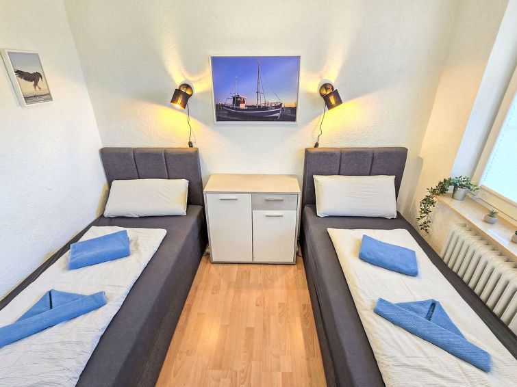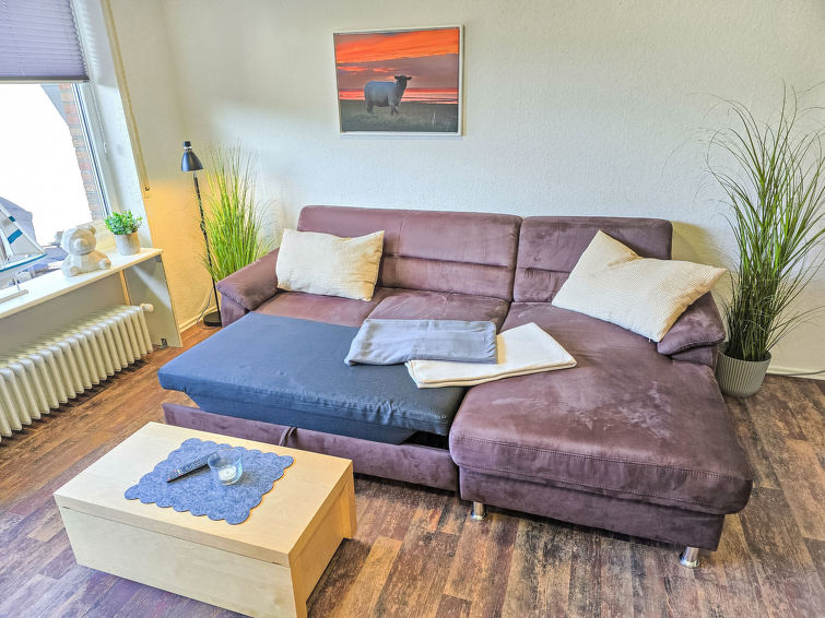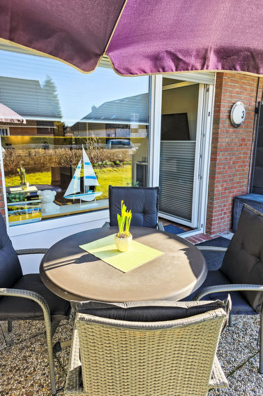 Well-maintained flermannsbolig "Ankerweg". 1.2 km fra sjøen, 1.2 km fra stranden. I huset: sentralvarme. Parkering ved hbrukt. Supermarked 650 m, restaurant 200 m, bakeri 600 m, bussholdeplass 200 m, togstasjon 2 km, ferje 2 km, sandstrand 1.2 km, utendørs svømmebasseng 14 km, innendørs pool 700 m. Golfbane(9 hull) 8 km, surfeskole 1.2 km, tennis 2.2 km.