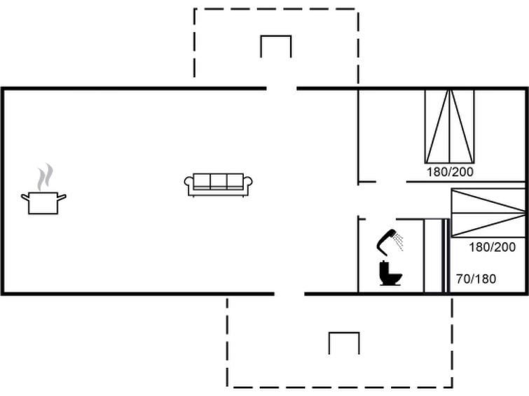 "Annamia" - 250m from the sea in Bornholm", 2 rom leilighet 70 m2. Passer for 6 voksne. Stue med, TV, CD-spiller, stereoanlegg og DVD. 1 rom med, 1 dobbeltseng. 1 rom med, 1 x 2 køysenger, 1 dobbeltseng. Kjøkken (oppvaskmaskin, 4 keramiske kokeplater, frys). Dusj/WC. Terrasse 20 m2, dekt. Fasiliteter: vaskemaskin, tørketrommel, høy barnestol barneseng (ekstra). Internett (trådløs LAN [WLAN]). Parkeringsplass ved hbrukt. Vennligst merk: røykfri bolig.