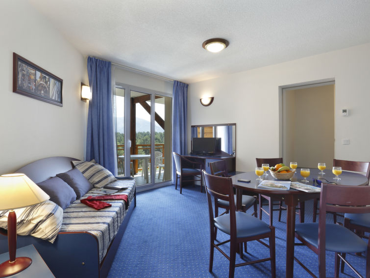 Residens "Appart Vacances Pyrénées 2000", med 4 etasjer. 148 leiligheter i residensen. I området Bolquère Pyrénées 2000, 400 m fra skiområdet. I anlegget: resepsjon, restaurant, frokostrom, trådløst LAN [WLAN], treningsrom, lekerom, heis, skirom, sentralvarme, vaskemaskin (ekstra), tørketrommel (ekstra). Rundstykkeservice. El-ladestasjon. Butikk, daglivarehandel, supermarked, restaurant 200 m. Tennis 400 m, skibakker 300 m. Attraksjoner i nærheten: Perpignan 90 km. Velkjente skiområder: Pyrénées 2000 400 m. Turstier Parc Naturel Régional des Pyrénées. Vennligst merk: bil anbefales. Bildet er et eksempel. Feriehuset kan variere i stue, planløsning, utstyr og møbler.