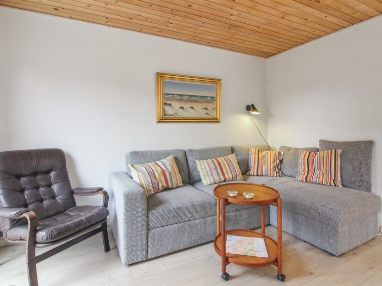 "Armi" - 75m from the sea in NW Jutland", 2 rom leilighet 50 m2. Passer for 2 voksne. Stue med, 1 dobbel sovesoffa, TV, radio, CD-spiller og DVD. 1 rom med, 1 dobbeltseng. Kjøkken (stekeovn, oppvaskmaskin, 4 keramiske kokeplater, mikrobølgeovn, frys). Dusj/WC. Terrasse 25 m2. Fasiliteter: vaskemaskin, tørketrommel, høy barnestol barneseng (ekstra). Internett (trådløs LAN [WLAN]). Vennligst merk: røykfri bolig.