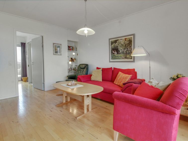 "Arngerus" in Western Jutland", 3 rom leilighet 74 m2. Passer for 5 voksne. Stue med, 1 dobbel sovesoffa, TV, radio, CD-spiller, stereoanlegg og DVD. 1 rom med, 1 dobbeltseng. 1 rom med, 1 dobbeltseng. Kjøkken (4 kokeplater, stekeovn, oppvaskmaskin, frys). Dusj/WC. Terrasse 10 m2, dekt. Utsikt av havet. Fasiliteter: høy barnestol barneseng (ekstra). Internett (trådløs LAN [WLAN]). Parkeringsplass ved hbrukt. Vennligst merk: røykfri bolig. Max kjæledyr / hund tillatt 1 kjæledyr / hund tillatt.