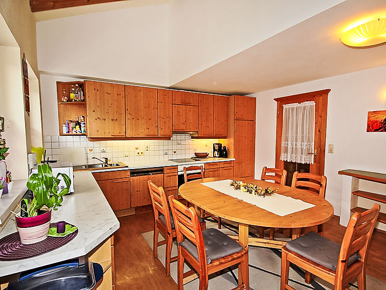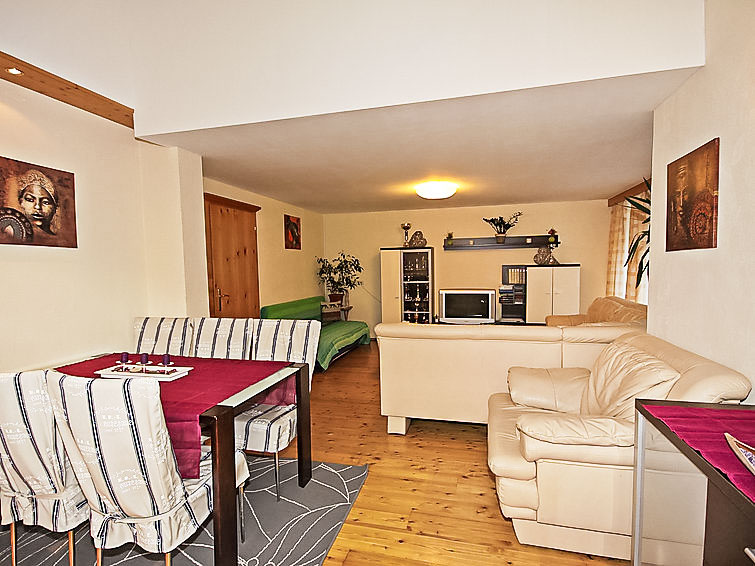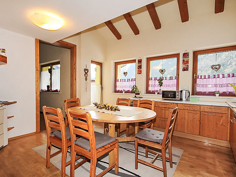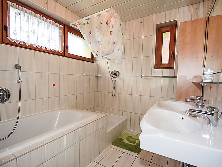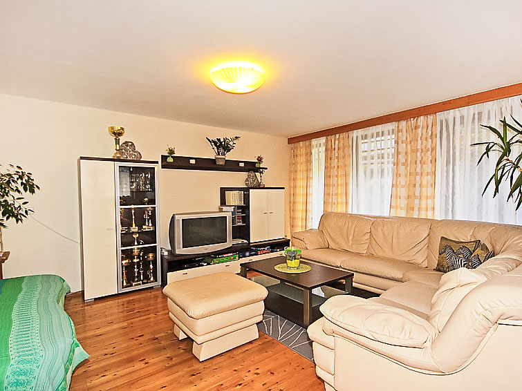 5 rom leilighet 170 m2 på 2 etasjer. Komfortabelt møbler: inngang. Stor stue/soverom med, 1 dobbel sovesofa, spisehjørne og satelit-TV. Utgang til terrassen. 1 rom med 1 seng, 1 dobbeltseng og bad/dusj. Utgang til balkongen. Kjøkken (4 kokeplater, ovn, oppvaskmaskin, mikrobølgeovn, elektrisk kaffemaskin) with spisebord. Utgang til terrassen. Sep. WC. On the lower ground floor: 2 dobbelt rom. 1 rom med, 1 x 2 køysenger, 1 dobbeltseng med, dusj. 2 dusjer, sep. WC. Balkong 8 m2, stor terrasse. Terrassemøbler, grill, liggestoler, lager. Meget vakker god utsikt av fjellene og dalen. Fasiliteter: vaskemaskin, tørketrommel. Internett (trådløs LAN [WLAN], gratis). Parkeringsplass ved huset. Please note: røykfritt hus.