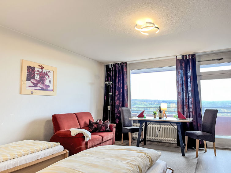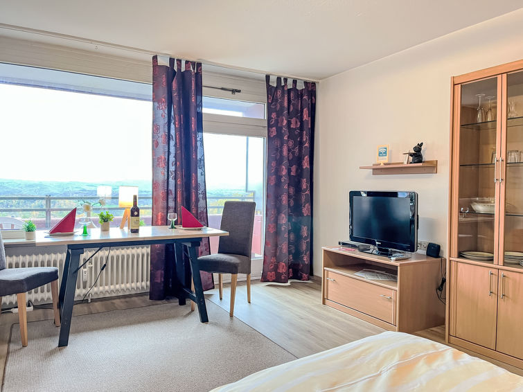 Leilighetshus "Ferienpark Rhein-Lahn". I området Lahnstein auf der Höhe 4 km fra sentrum av Lahnstein, 10 km fra sentrum av Koblenz, 4 km fra elven. Fellesbruk: innendørs pool (11 x 6 m, dybde 110 cm dyp) med innbygdetrapper. Dusj/WC ved bassenget. I anlegget: resepsjon, trådløst LAN [WLAN], badstu (ekstra). Bordtennis, heis, sentralvarme, vaskemaskin, tørketrommel (for felles bruk ekstra). Parkering ved hbrukt. El-ladestasjon. Supermarked 4.5 km, restaurant 800 m, sykkelutleie 4.5 km, bussholdeplass 200 m, togstasjon "Koblenz (HBF)" 11 km, park "Kurpark" 200 m, utendørs svømmebasseng 1.5 km, innendørs pool 5 km, termalbad "Bad Ems" 10 km. Golfbane(18 hull) 16 km, tennis 500 m, minigolf 6 km, turstier fra hbrukt 100 m, sykkelvei 4.5 km, lekeplass 100 m. Attraksjoner i nærheten: Burg Lahneck 3 km, Marksburg 7 km, Deutsches Eck Koblenz / Seilbahn 10 km, Schloss Stolzenfels 13 km. Turstier Lahn-Höhenweg 100 m, Rheinsteig (11) 100 m, Jakobswege Rhein-Lahn.