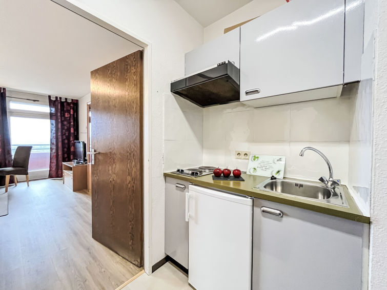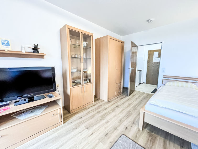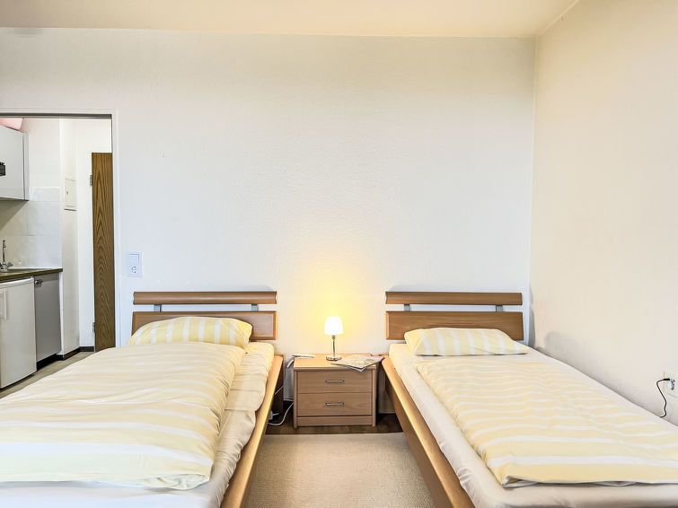 "B715", 1 rom leilighet 33 m2 i 7th etasje, beliggenhet mot sør. Stue/soverom med 2 senger (90 cm lengde 200 cm), satelit-TV (flatskjerms TV). Utgang til balkongen. Kjøkkenkrok sammen med ingangen (2 kokeplater, brødrister, vannkoker, elektrisk kaffemaskin). Bad/dusj/WC. Balkongmøbler. Vakker utsikt av landskapet. Fasiliteter: Internett (trådløs LAN [WLAN], gratis). Vennligst merk: røykfri bolig. Røykvarsler.