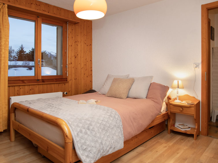 "Beau Site No 21", 3 rom leilighet 70 m2 i 3rd etasje, beliggenhet mot sør-øst. Komfortabelt og vakkert møbler: stue/spisestue med panoramavindu med, åpen peis, kabel-TV og radio. Utgang til balkongen. 1 rom 11 m2 med 2 senger (90 cm lengde 190 cm). 1 rom 7 m2 med, 1 dobbeltseng (160 cm). Kjøkkenkrok (3 kokeplater, stekeovn, mikrobølgeovn, elektrisk kaffemaskin). Bad/WC. øverste etasje: åpen galleri med 1 seng (90 cm lengde 190 cm). Balkong 14 m2, beliggenhet mot sør-øst. Terrassemøbler. Meget vakker utsikt av fjellene. Fasiliteter: Internett (trådløs LAN [WLAN], gratis). Parkeringsplass. Vennligst merk: røykfri bolig.