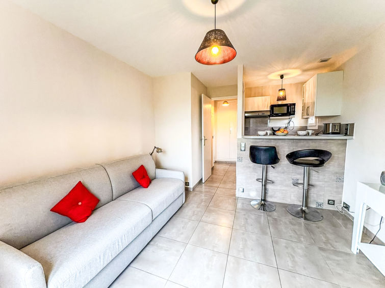 1 rom etromsleilighet 25 m2 i 1st etasje. Renovert i 2019, moderne møbler: stue med, 1 dobbel sovesoffa (140 cm, lengde 190 cm), TV (flatskjerms TV). Utgang til balkongen. Kjøkkenkrok (2 keramiske kokeplater, elektrisk kaffemaskin, kombinert mikrobølgeovn) med bar. Dusj/WC. El-oppvarming. Balkong 5 m2. Balkongmøbler. Utsikt av havet. Fasiliteter: vaskemaskin. Internett (trådløs LAN [WLAN], ekstra). Parkeringsplass plass nr 6. Vennligst merk: røykvarsler. 83119000147DP