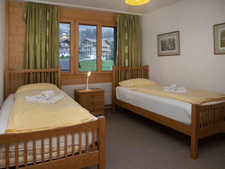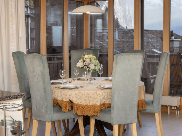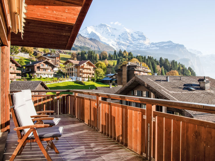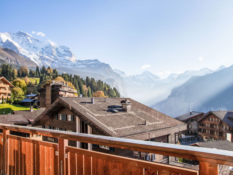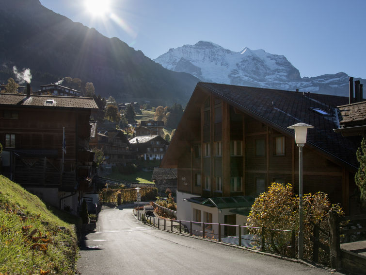 Familievennlig leilighetshus "Bella Vista", bygget i 2006. 200 m fra sentrum av Wengen, ved en høyde, utmerkt område: midt i sentrum, men roligt. Fellesbruk: velholdt hage (inngjerdet). Lekeplass (rutsjebane, huske). I huset: heis, sentralvarme. Innkjøpsservis mulig før ankomst. Butikk, supermarked 200 m, restaurant 50 m, bar, bakeri 200 m.minutters gange til sentrum 3, togstasjon "Wengen" 200 m, utendørs svømmebasseng 600 m. Kabelbane, skisportenanlegg 250 m. Vennligst merk: bilfritt ferieområde. Ankomst via fjellheis. Det er flere lignende leiligheter i samme hus.