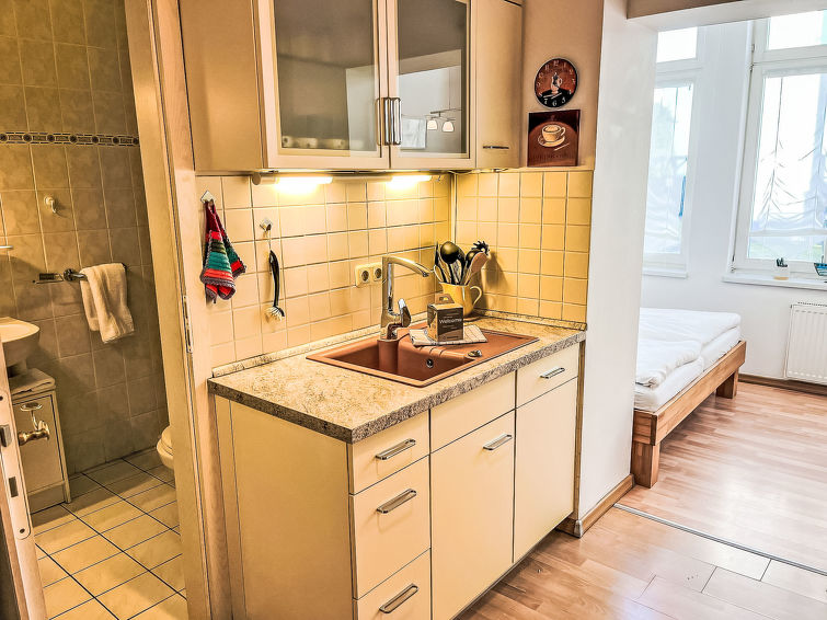 "Bergstraße", 1 rom leilighet 32 m2, på bakkeplan. Lys, renovert i 2022, moderne og koseligt møbler: stue med, satelit-TV, radio og DVD. Utgang til terrassen. 1 åpent litet rom med, 1 dobbeltseng (2 x 80 cm, lengde 200 cm). Åpent kjøkken (miniovn, oppvaskmaskin, 2 keramiske kokeplater, brødrister, vannkoker, mikrobølgeovn, elektrisk kaffemaskin) med, spisebord. Dusj/WC. Oppvarming. Terrasse delvis dekt. Terrassemøbler. Fasiliteter: høy barnestol barneseng. Internett (trådløs LAN [WLAN], gratis). Parkeringsplass (1 Bil). Vennligst merk: røykfri bolig. Røykvarsler.