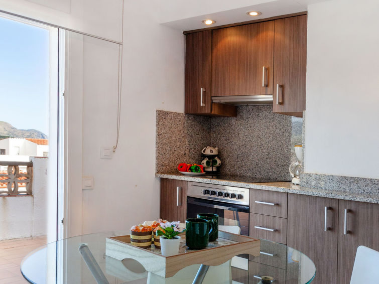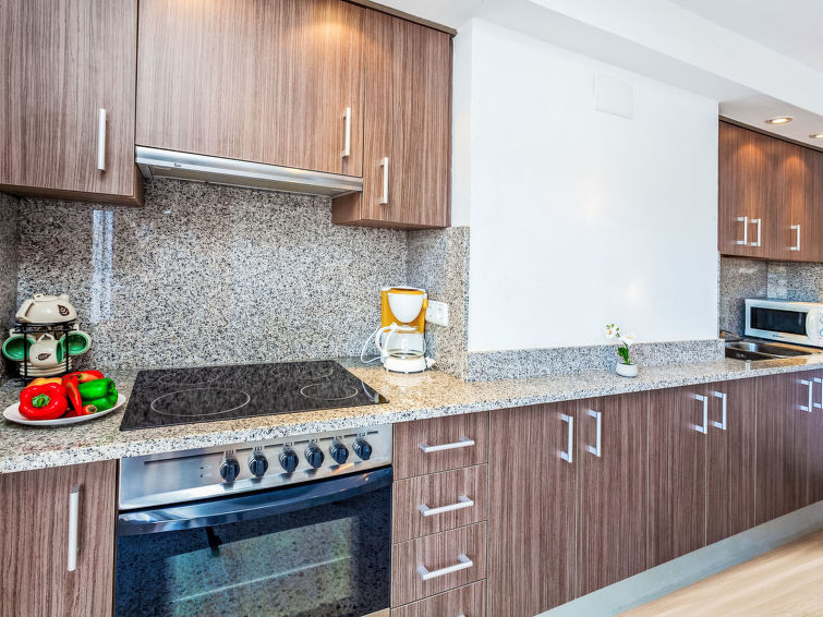 "Blue Ocean", 2 rom takleilighet 30 m2 i 3rd etasje. Enkelt og moderne møbler: stue/spisestue med, 1 sovesoffa, spisebord og TV (flatskjerms TV). Utgang til terrassen. 1 rom med, 1 dobbeltseng (2 x 90 cm). Kjøkken/stue (stekeovn, 4 keramiske kokeplater, mikrobølgeovn). Dusj/WC. Oppvarmingsalternativ. Liten terrasse 4 m2. Terrassemøbler. Hærlig utsikt av havet og fjellene. Fasiliteter: vaskemaskin. Internett (trådløs LAN [WLAN], gratis). Vennligst merk: bare TV ES. Ingen heis. HUTG003266