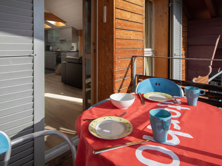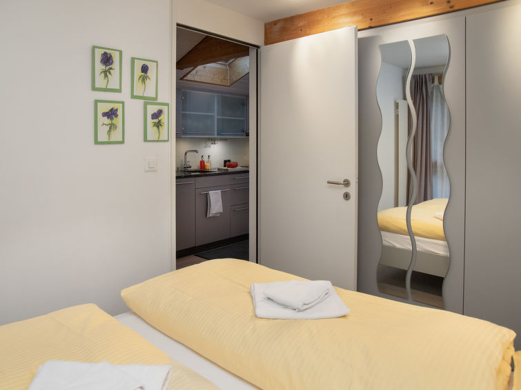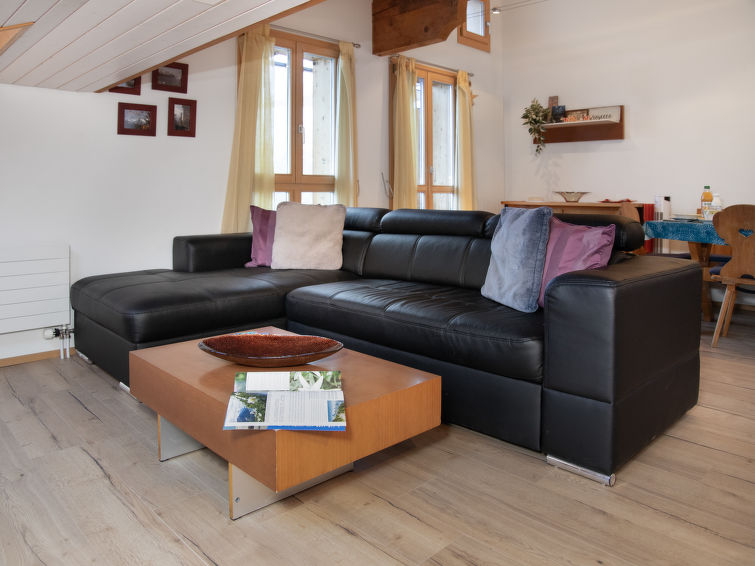"Apt. No.09", 3 rom leilighet 40 m2, i toppetasjen. Passer for 2 voksne + 1 barn. Delvis, med skråtak, smakfullt og koseligt møbler: stue/spisestue med, spisehjørne, kabel-TV, radio, CD-spiller og DVD. 1 rom med, 1 dobbeltseng (1 x 140 cm, lengde 200 cm). 1 litet barnerom med skråtak med 1 seng (90 cm lengde 200 cm). Åpent kjøkken (stekeovn, oppvaskmaskin, 4 keramiske kokeplater, brødrister, vannkoker, elektrisk kaffemaskin, Internet(Nespresso), ekstra). Bad/dusj/WC. Vannkoker. Liten balkong. Balkongmøbler. Meget vakker utsikt av fjellene. Fasiliteter: vaskemaskin, tørketrommel, strykejern, hårføner. Internett (trådløs LAN [WLAN], gratis). Vennligst merk: røykfri bolig.
