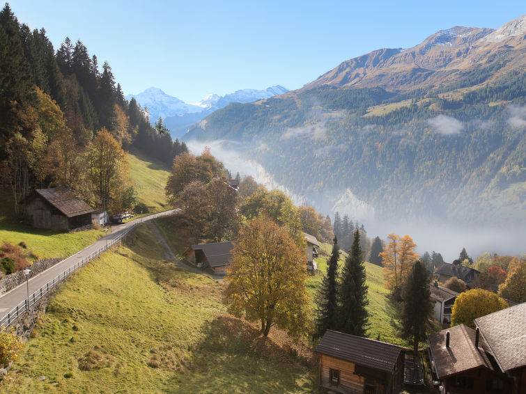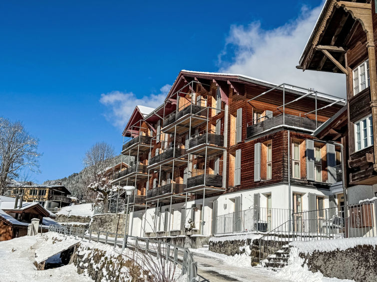 Leilighetshus "Breithorn-Residence". 500 m fra sentrum av Wengen, i en roligt, solrikt posisjon ved en høyde. I huset: sentralvarme. Innkjøpsservis mulig før ankomst. Butikk, supermarked 500 m, restaurant 300 m, bar, bakeri 500 m.minutters gange til sentrum 7, togstasjon "Wengen" 500 m, utendørs svømmebasseng 700 m. Kabelbane, skisportenanlegg 500 m, lekeplass 300 m. Vennligst merk: bilfritt ferieområde. Ankomst via fjellheis. Det er flere lignende leiligheter i samme hus.