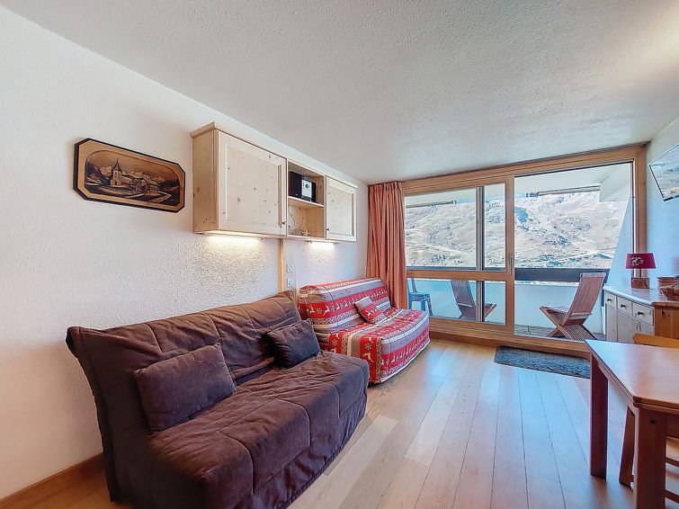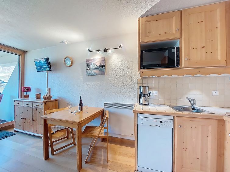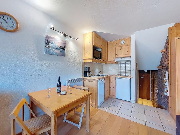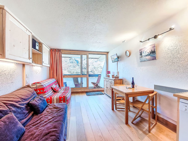 The residence Brelin is linked to the centre "La Croisette" by a public free lift 24/7 residens "Brelin". I en høyt posisjon. I anlegget: restaurant, butikkpingmuligheter, heis, skirom. Offentlig parkering. Daglivarehandel 20 m, kjøpesenter, restaurant 250 m. Idrettsenter 500 m, skisportenanlegg 50 m, skibakker 10 m. Velkjente skiområder: 3 Vallées. Vennligst merk: Bildet er et eksempel. Det er flere lignende leiligheter i samme hus.