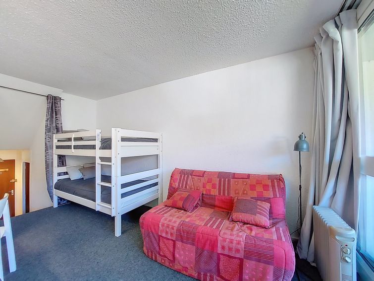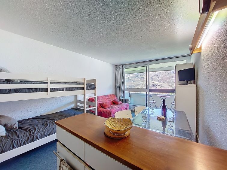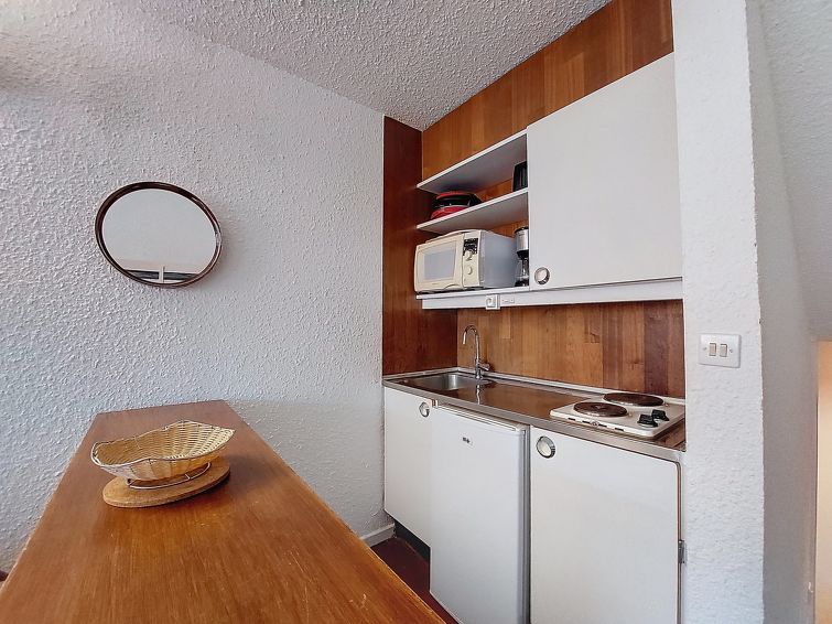 The residence Brelin is linked to the centre "La Croisette" by a public free lift 24/7 residens "Brelin". I en høyt posisjon. I anlegget: restaurant, butikkpingmuligheter, heis, skirom. Offentlig parkering. Daglivarehandel 20 m, kjøpesenter, restaurant 250 m. Idrettsenter 500 m, skisportenanlegg 50 m, skibakker 10 m. Velkjente skiområder: 3 Vallées. Vennligst merk: Bildet er et eksempel. Det er flere lignende leiligheter i samme hus.