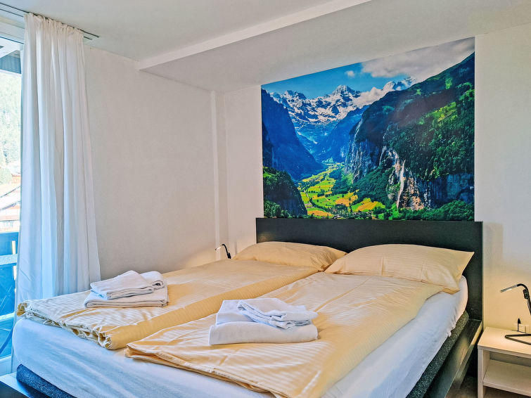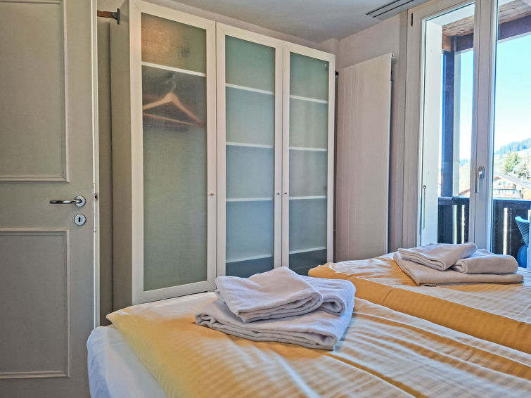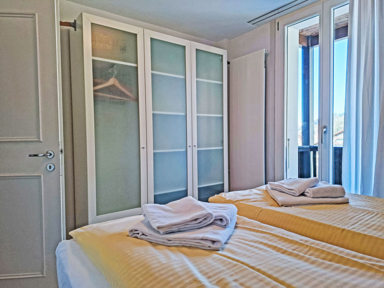 3 rom leilighet 56 m2 i 2nd etasje. Komfortabelt og stilfullt møbler: stue/spisestue med, satelit-TV, radio, CD-spiller og DVD. 1 rom med, 1 dobbeltseng (1 x 160 cm, lengde 200 cm). Utgang til balkongen. 1 rom med, 1 x 2 køysenger (90 cm, lengde 200 cm). Åpent kjøkken (stekeovn, oppvaskmaskin, 4 keramiske kokeplater, brødrister, vannkoker, mikrobølgeovn, elektrisk kaffemaskin, Internet(Nespresso), ekstra, raclettegrill (ost)). Bad/dusj/WC, boblebad. 2 små balkonger. Utsikt av fjellene. Fasiliteter: hårføner. Vennligst merk: røykfri bolig.