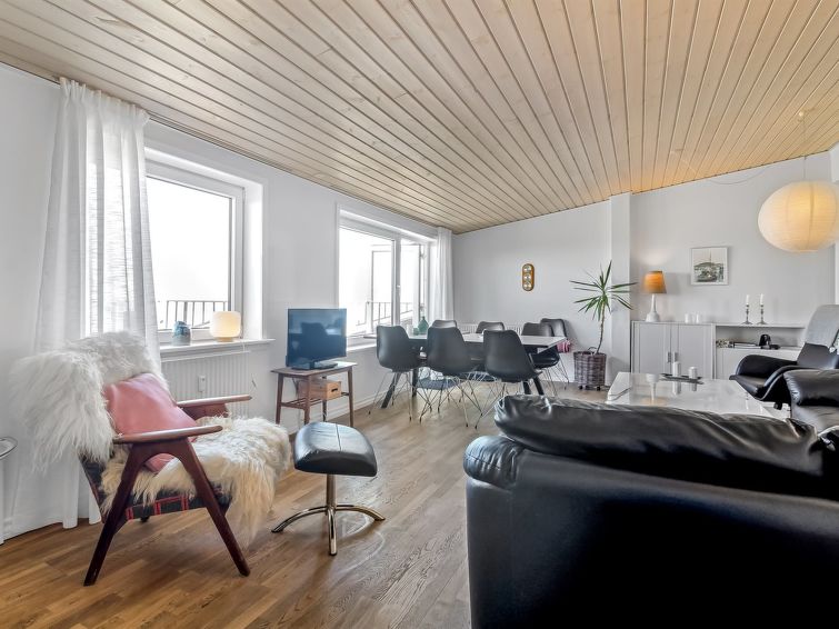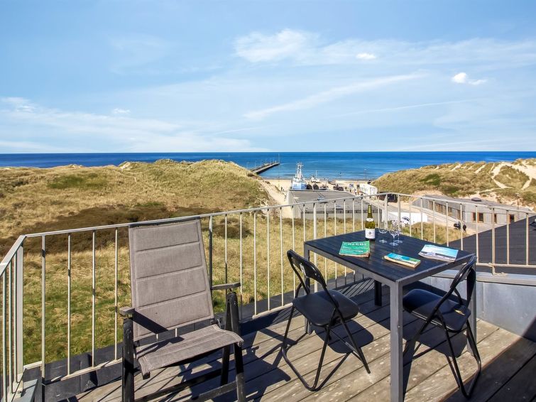 "Britta" - 100m from the sea in NW Jutland", 3 rom leilighet 93 m2. Passer for 6 voksne. Stue med, TV, radio og CD-spiller. 1 rom med, 1 dobbeltseng. 1 rom med, 1 dobbeltseng. 1 rom med, 1 dobbeltseng. Kjøkken (stekeovn, oppvaskmaskin, 4 keramiske kokeplater, mikrobølgeovn, frys). Dusj/WC. Terrasse 10 m2. Utsikt av havet. Fasiliteter: vaskemaskin, tørketrommel. Internett (trådløs LAN [WLAN]). Parkeringsplass ved hbrukt. Max kjæledyr / hund tillatt 1 kjæledyr / hund tillatt.