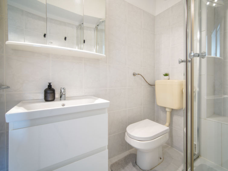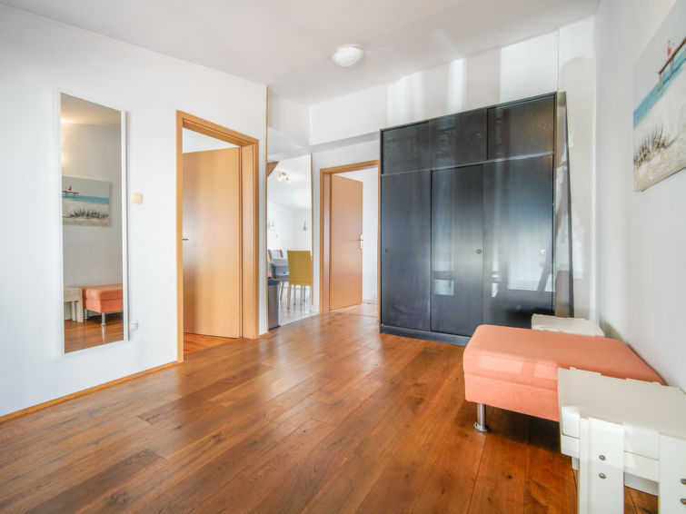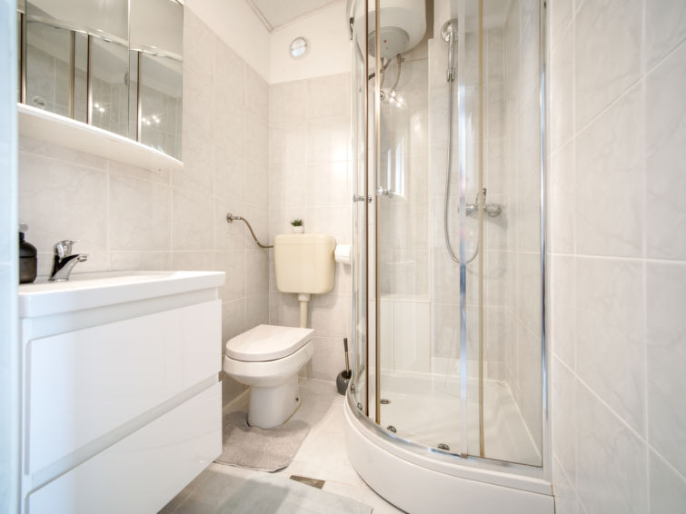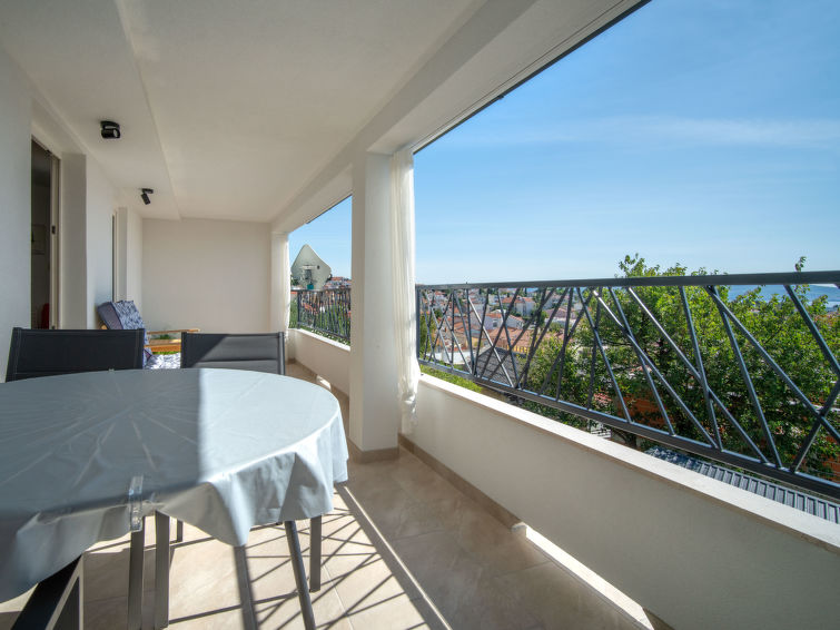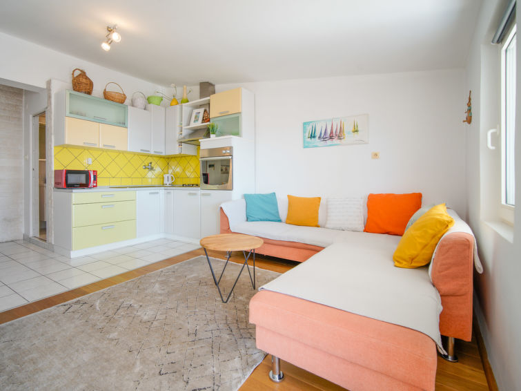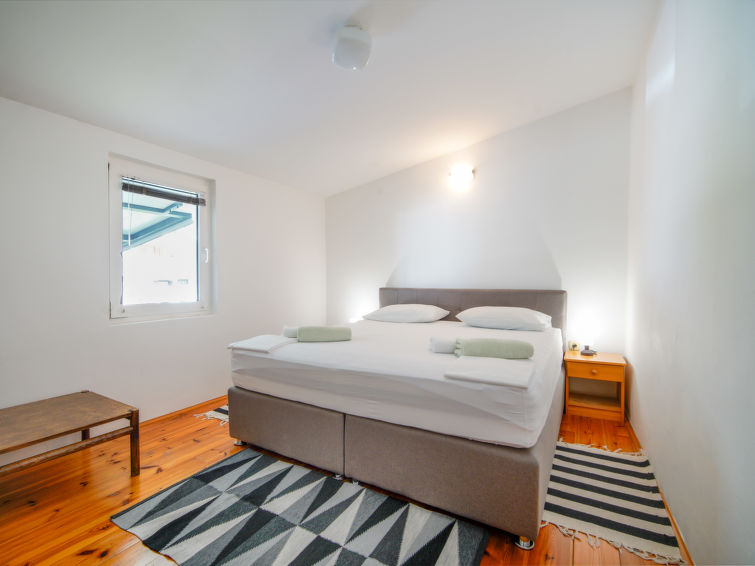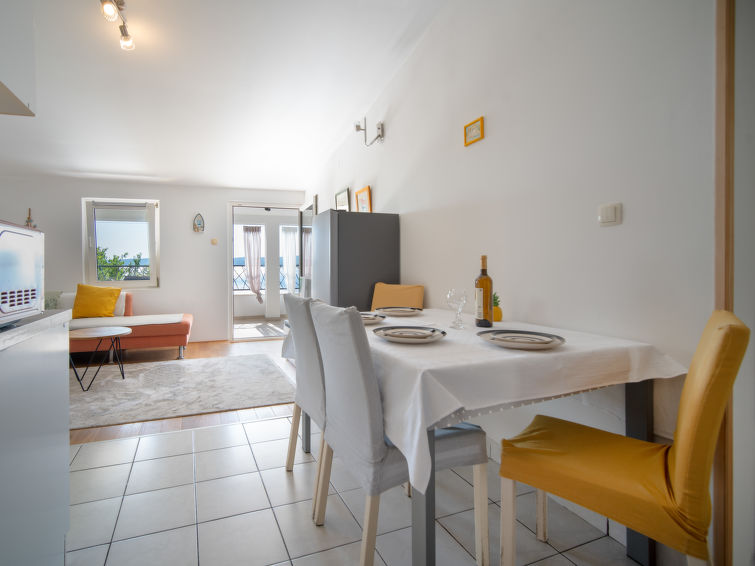 3 rom leilighet 65 m2 i 1st etasje. Stue/spisestue med, satelit-TV. Utgang til balkongen. Inngang med, air-conditioning. 1 rom med, 1 dobbeltseng (180 cm, lengde 200 cm). 1 rom med, 1 dobbeltseng (2 x 80 cm, lengde 200 cm). Åpent kjøkken (2 kokeplater, stekeovn, 2 gassbrennere, vannkoker, elektrisk kaffemaskin). Dusj/WC. Oppvarmingsalternativ. Balkong 7 m2. Balkongmøbler. Hærlig utsikt av havet. Fasiliteter: Internett (trådløs LAN [WLAN], gratis). Kjæledyr / hund tillatt 1 kjæledyr / hund tillatt. Lav høyde på inngangsdøren, 175 cm.