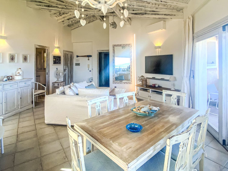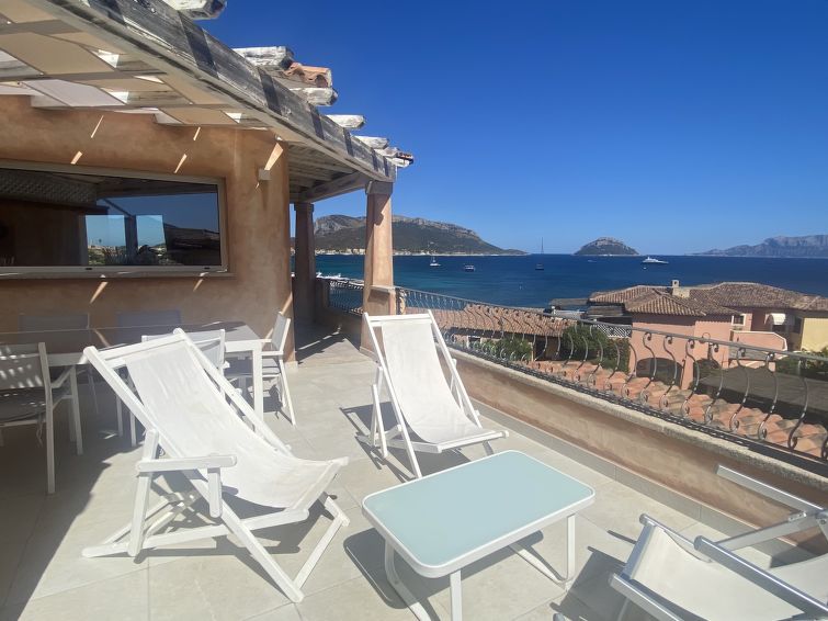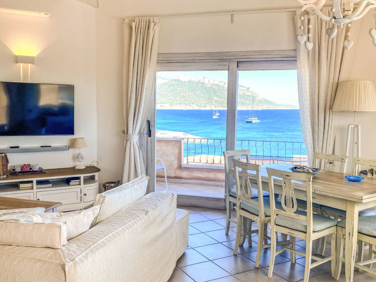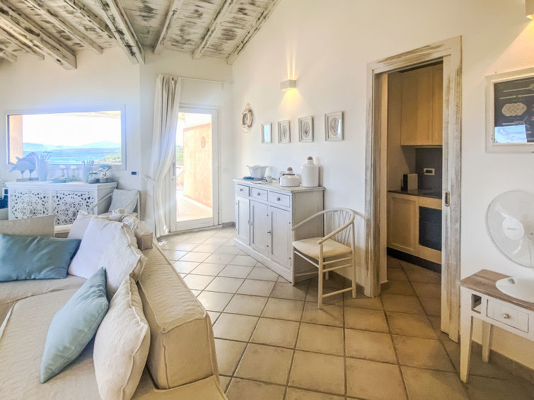 Fin, koselig resort "S'Abba e Sa Pedra", med 2 etasjer. 80 leiligheter i residensen. 2.5 km fra sentrum av Golfo Aranci, 18 km fra sentrum av Olbia, i en solrikt posisjon ved en høyde, 300 m fra sjøen, direkte tilgang til stranden. Fellesbruk: tomt (inngjerdet), eng, 1 badebasseng (200 m2, Sesongåpent: 01.Mai. - 31.Okt.). Utendørs dusj, terrasse, Underholdning av bassenget av eieren/gartneren. I anlegget: resepsjon. Offentlig parkering på veien. Supermarked 2.5 km, ferje "Olbia" 18 km, sandstrand 500 m, strand ved klipper 300 m (liten).