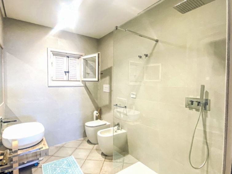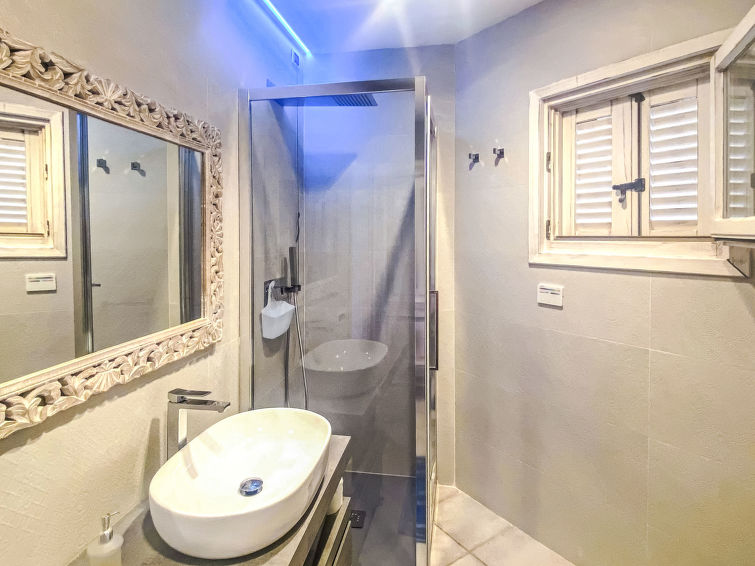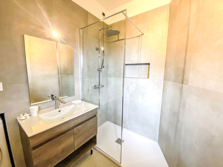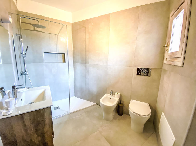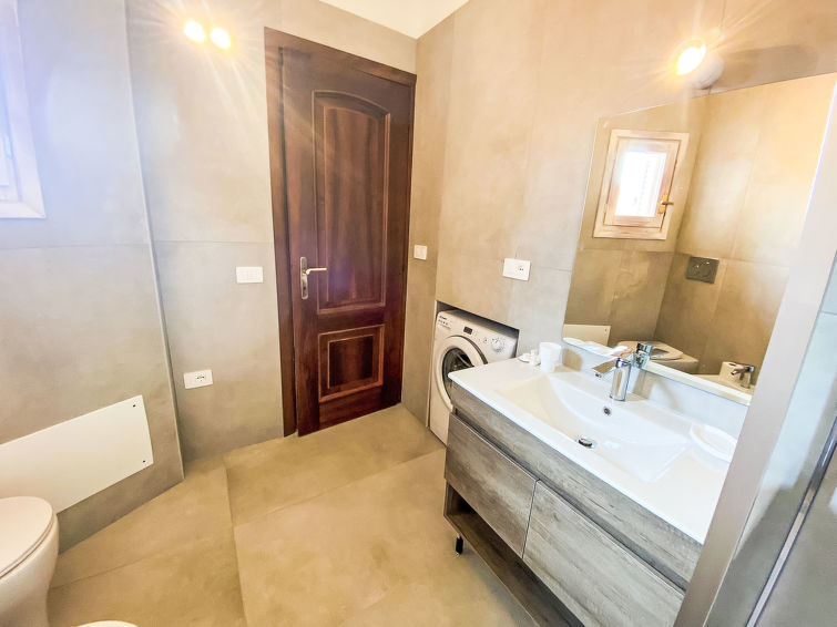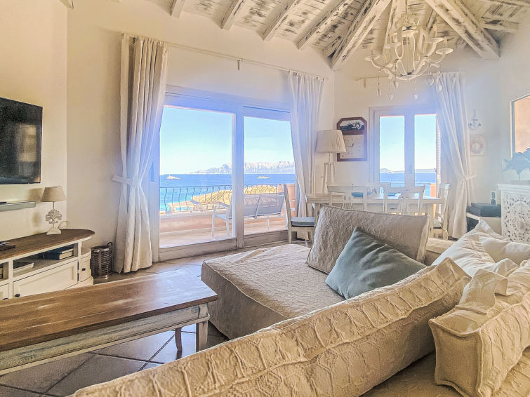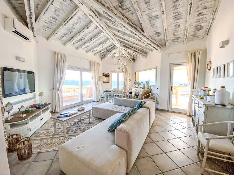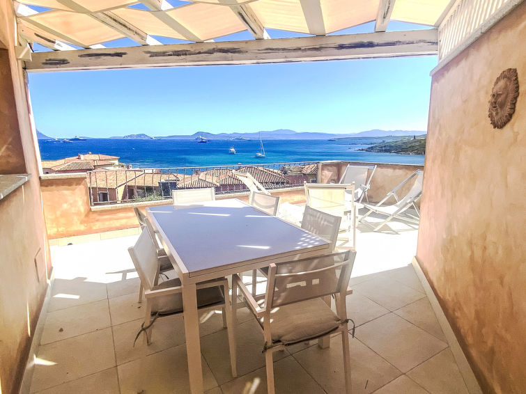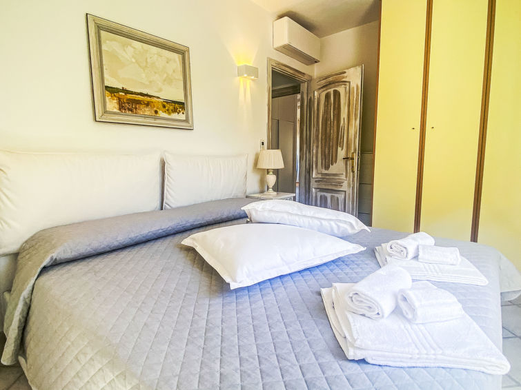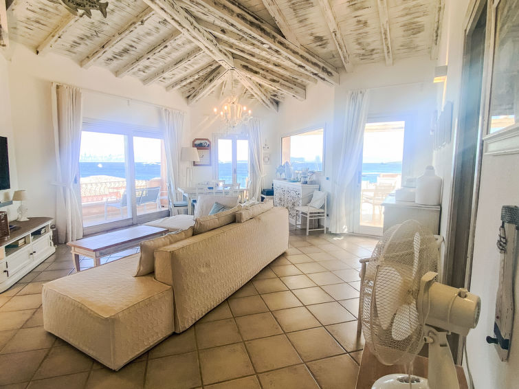 "Camilla", 3 rom leilighet 100 m2 i 1st etasje. Komfortabelt og smakfullt møbler: stor stue/spisestue med, satelit-TV og air-conditioning. Utgang til terrassen. 1 dobblet rom med, dusj/bidèt/WC og air-conditioning. 1 rom med 2 senger. Kjøkken (oppvaskmaskin, 4 gassbrennere, mikrobølgeovn). Dusj/bidé/WC. Airconditioning, varmluftsoppvarming (ekstra). Terrasse delvis dekt. Terrassemøbler. Hærlig utsikt av havet. Fasiliteter: vaskemaskin, strykejern, høy barnestol barneseng (ekstra), hårføner. Parkeringsplass (overdekt). E2141