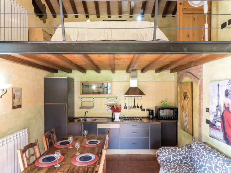 "Casa Alessandro n°5", 3 rom leilighet 75 m2 på 2 etasjer. Rustikt møbler: kjøkken/stue (stekeovn, oppvaskmaskin, 4 gassbrennere, brødrister, frys, elektrisk kaffemaskin) med spisebord, satelit-TV. Utgang til hagen. øverste etasje: (vindeltrapp) åpen galleri med skråtak, Lav dørhøyde 160 cm 250 cm med, 1 dobbeltseng. 1 rom med skråtak med, 1 dobbeltseng. 1 rom med skråtak med, 1 dobbeltseng. Dusj/WC. Gassoppvarming. Tregulv. Terrasse dekt, sitteplass i hagen, hage. Terrassemøbler, liggestoler (2). Meget vakker utsikt av landskapet. Fasiliteter: myggnett. Internett (trådløs LAN [WLAN], gratis). Vennligst merk: røykfritt hus. 1 lite kjæledyr / liten hund tillatt. Dersom utleieobjektet blir bestilt for færre personer enn det som er maksimalt tillatt, vil ikke alle soverommene stå til rådighet.