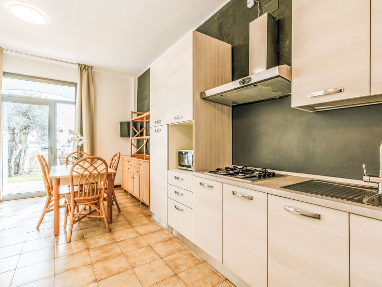 Stor, familievennlig resort "Sanghen". I området Pieve di Manerba 3.5 km fra sentrum av Manerba del Garda, ved en høyde, 250 m fra innsjø 250 m fra stranden, direkte tilgang til stranden. Fellesbruk: tomt 70'000 m2 (inngjerdet), trær, plen med solningsområde, 3 badebasseng (Sesongåpent: 01.Mai. - 30.Sep. og 01.Jul. - 31.Aug. bassengets åpningstider: 08:30-13:00 og 15:30-19:30). Barnebasseng, utendørs dusj, boblebad, tennis (1 x hard bane), lekeplass. I anlegget: resepsjon, restaurant, bar, trådløst LAN [WLAN], butikkpingmuligheter, vaskemaskin (ekstra), tørketrommel (for felles bruk ekstra). Rundstykkeservice, frokost og halvpensjon muligt (ekstra). Trapper til hbrukt. Parkering (begrenset antall plasser) på tomten. Bussholdeplass 50 m, småstenstrand 250 m. Golfbane(27 hull) 6 km. Attraksjoner i nærheten: Salò 9 km, Desenzano del Garda 15 km, Brescia 38 km. Vennligst merk: underholdning under høysesongen. Velegnet for barnefamilier. Privat båtplass (ekstra) på forespørsel.