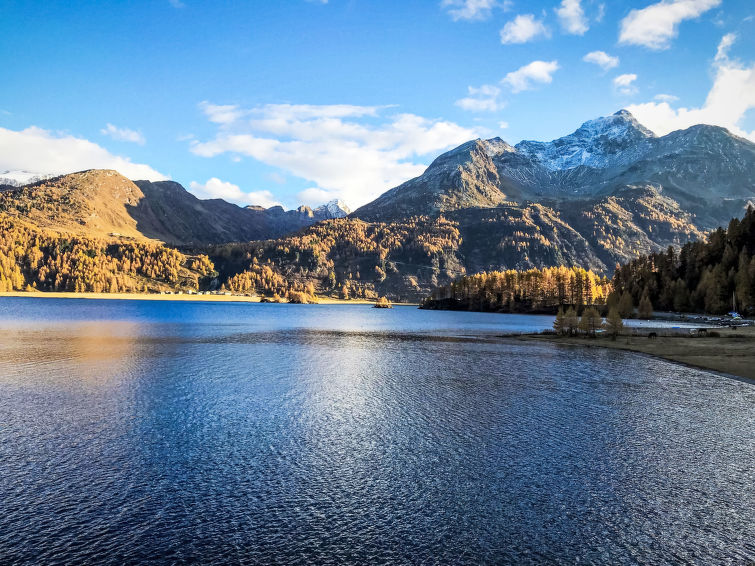 Maloja 16 km fra St.Moritz: Flermannsbolig "Casa La Planüra", med 3 etasjer, frittstående, omgitt av enger. I sentrum av Maloja, ved en hovedvei i det grønne. I huset: heis, skirom, sentralvarme, vaskemaskin (ekstra), tørketrommel (for felles bruk ekstra). Tilgang med bil hele veien til hbrukt. Felles garasje ved hbrukt. Daglivarehandel 250 m, restaurant 100 m, bussholdeplass "Maloja, Posta" 20 m, sjøen Silser See 1 km. Golfbane(18 hull) 23 km, surfeskole 14 km, tennis 16 km, tennisklubb 16 km, minigolf 16 km, rideskole 14 km, turstier fra hbrukt, sykkelvei 100 m, kabelbane 8.6 km, skiheis 650 m, skiutleie 350 m, skiskole 8.6 km, skiskole for barn 650 m, akebane 21.5 km, langrensløype, skøytebane 200 m, lekeplass 650 m. Attraksjoner i nærheten: Atelier Segantini 100 m, Turm Belvédère 350 m, Nietzsche Haus in Sils-Maria 8.5 km, Museo Ciäsa Granda in Stampa 15.6 km. Velkjente skiområder: Corvatsch-Furtschellas 9 km, Corviglia 16 km. Velkjente innsjøer: Silser See 1 km, Silvaplaner See 9 km, St. Moritzer See 16 km. Turstier Lunghin- & Septimerpass, Cavloc & Fex Tal, Bergell. Vennligst merk: bil anbefales. Av- og pålastning av bagasje er mulig ved feriebol. Nøkkelleveringen skjer i Interhome i St. Moritz, 16 km.
