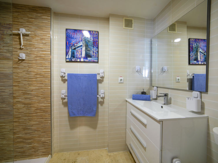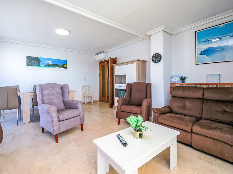 "Casita Blanca", 4 rom taketasje 117 m2 på 2 etasjer, i toppetasjen. Romlig og lys, praktiskt og komfortabelt møbler: stue/spisestue med, digital TV, air-conditioning og varmluft oppvarming. Utgang til terrassen. 1 rom med, 1 dobbeltseng (1 x 150 cm, lengde 190 cm), air-conditioning og varmluft oppvarming. Utgang til terrassen. 1 rom med 2 senger (90 cm lengde 180 cm), air-conditioning og varmluft oppvarming. Kjøkken (stekeovn, oppvaskmaskin, 3 keramiske kokeplater, brødrister, vannkoker, elektrisk kaffemaskin). Bad/bidé/WC. øverste etasje: 1 rom med, 1 dobbeltseng (1 x 150 cm, lengde 190 cm), air-conditioning og varmluft oppvarming. Utgang til terrassen. Bad/bidé/WC. Stor terrasse. Terrassemøbler. Panoramautsikt av havet og byen. Fasiliteter: vaskemaskin, strykejern, høy barnestol barneseng for barn opp til 2 år, hårføner. Internett (trådløs LAN [WLAN], gratis). Parkeringsplass plass nr 1 (overdekt, 1 Bil), høyde 250 cm, bredde 520 cm. VT-496022-A