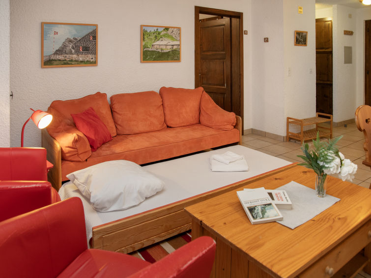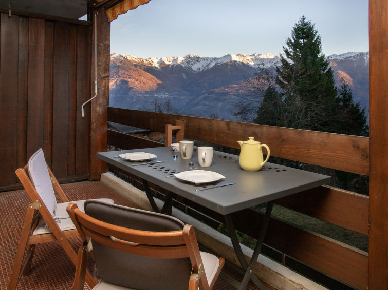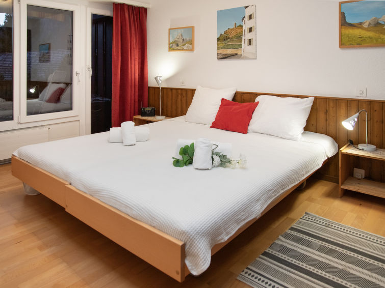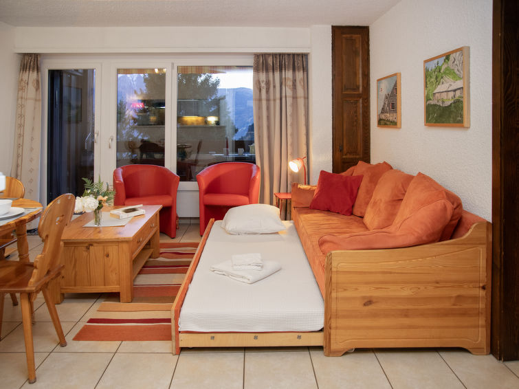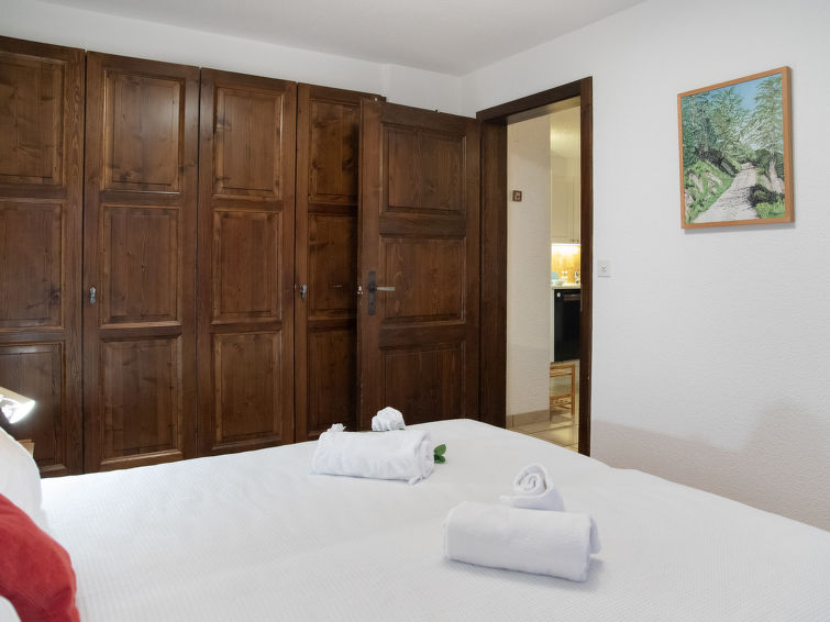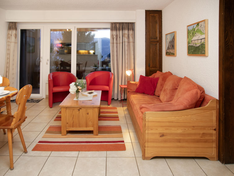 "Centaure B RS 2", 2 rom leilighet 48 m2, i øvre etasje, beliggenhet mot sør. Komfortabelt møbler: stue/spisestue med, 1 dobbel sovesoffa (2 x 72 cm, lengde 190 cm), kabel-TV, flatskjerms TV, radio, CD-spiller og DVD. Utgang til balkongen. 1 rom med 2 senger (90 cm lengde 200 cm), radio. Utgang til balkongen. Kjøkkenkrok (stekeovn, oppvaskmaskin, 4 keramiske kokeplater, mikrobølgeovn, elektrisk kaffemaskin, Internet(Nespresso), ekstra, raclettegrill (ost)) med bar. Bad/WC. Balkong 13 m2. Terrassemøbler, liggestoler (2). Meget vakker utsikt av fjellene og dalen. Fasiliteter: strykejern, hårføner. Internett (trådløs LAN [WLAN]). Garasje plass nr RS 2 box fermé (1 Bil). Vennligst merk: røykfri bolig.