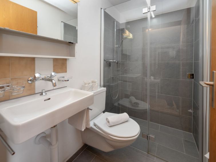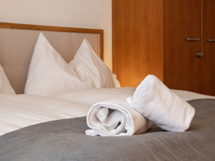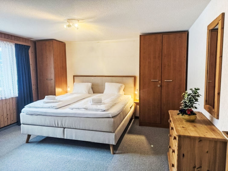 2 rom leilighet 45 m2, på bakkeplan, beliggenhet mot sør. Delvis renovert i 2022, koseligt møbler: stue/soverom med, 1 sovesoffa (140 cm, lengde 190 cm), internasjonale TVkanaler og radio. Utgang til sitteplass i hagen, beliggenhet mot sør. 1 rom med 2 senger (90 cm lengde 200 cm). Åpent kjøkken (stekeovn, 4 keramiske kokeplater, mikrobølgeovn, elektrisk kaffemaskin, raclettegrill (ost)). Dusj/WC. Varmekabler i gulvet. Parkett, teppe. Sitteplass i hagen 70 m2, beliggenhet mot sør og beliggenhet mot vest. Terrassemøbler, liggestoler (2), lager. Hærlig utsikt av fjellene. Fasiliteter: hårføner. Internett (trådløs LAN [WLAN], gratis). Garasje ved hbrukt. Vennligst merk: røykfri bolig. Egen inngang, brannslukkningsapparat.