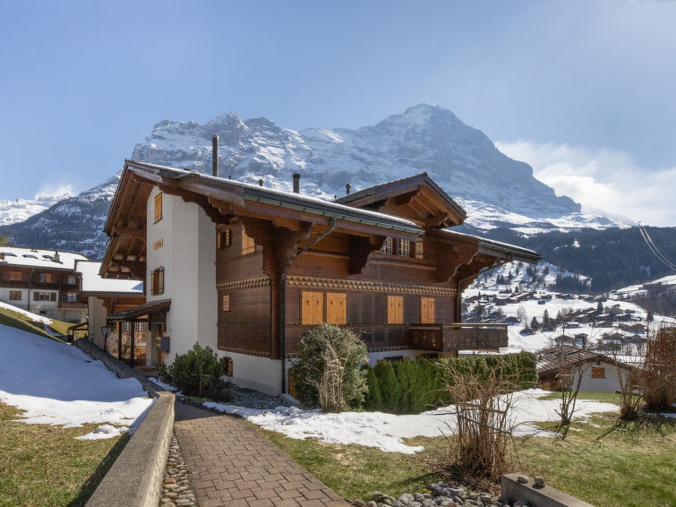Fin flermannsbolig "Chalet Cortina". I området Im Gallizündli/Rothenegg, 900 m fra sentrum, i en roligt, solrikt posisjon, beliggenhet mot sør-vest. I huset: heis, sykkelrom, skirom, sentralvarme. Tilgang med bil hele veien til hbrukt. Kjettinger nødvendige på vinteren. Felles garasje nr 22. Daglivarehandel, kjøpesenter 900 m, restaurant 400 m, bar, bakeri 900 m, internett café 400 m, sykkelutleie 1 km, bussholdeplass "Wasserbühlen" 100 m, togstasjon "Grindelwald Dorf" 900 m, utendørs svømmebasseng 400 m, innendørs pool 1 km. Golfbane(9 hull) 3 km, tennis 2.5 km, minigolf 1.2 km, idrettsenter 1 km, fjellheis, gondolheis, skiutleie 400 m, skibussholdeplass 100 m, langrensløype 400 m, lekeplass 1 km. Velkjente innsjøer: Thuner-/Brienzersee 18 km. Vennligst merk: gratis skibuss. Nøkkelleveringen skjer i Interhome i Grindelwald. Stille og rolig område. Stillhet og god oppførsel.