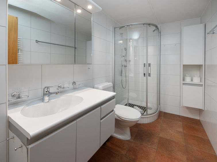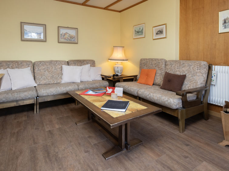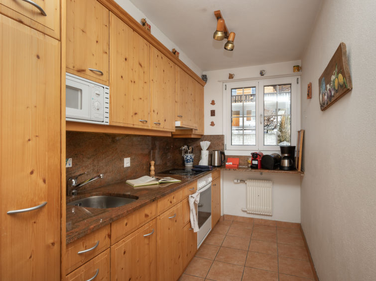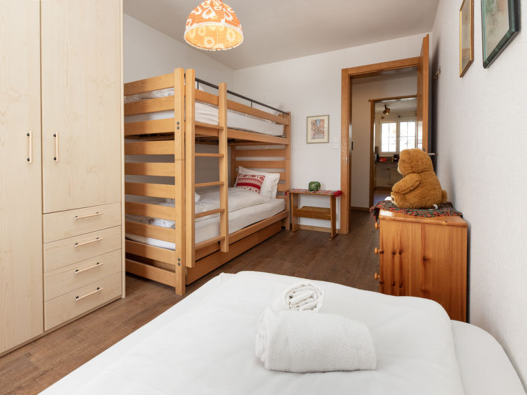 3 rom leilighet 60 m2 i 1st etasje, beliggenhet mot sør. Koseligt møbler: stue/spisestue med, kabel-TV (flatskjerms TV), radio. Utgang til balkongen, beliggenhet mot sør og beliggenhet mot vest. 1 rom med 2 senger (90 cm lengde 200 cm). 1 rom med 1 seng (90 cm lengde 200 cm), 1 x 1 køysenger (90 cm, lengde 200 cm). Kjøkken (stekeovn, oppvaskmaskin, 4 keramiske kokeplater, mikrobølgeovn, elektrisk kaffemaskin, Internet(Nespresso), ekstra, raclettegrill (ost)). Dusj/WC. Stor balkong 10 m2. Hærlig utsikt av fjellene og dalen. Fasiliteter: hårføner. Internett (trådløs LAN [WLAN], gratis). Parkeringsplass plass nr 5, ganz rechts. Vennligst merk: røykfri bolig.