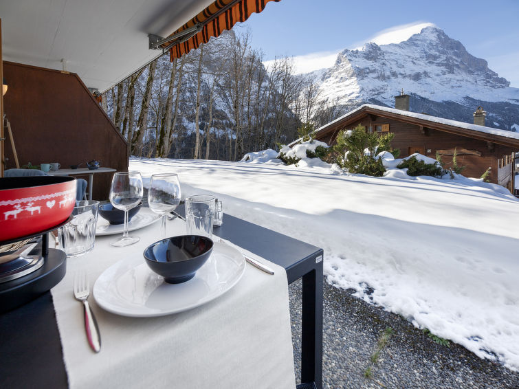 Fin flermannsbolig "Chalet Sunneblick". I området Mühlebach, 2 km fra sentrum, i en roligt, solrikt posisjon, 100 m fra skiområdet, beliggenhet mot sør. I huset: skirom, sentralvarme, vaskemaskin, tørketrommel (for felles bruk ekstra). Kjettinger nødvendige på vinteren. Trapper til hbrukt. Parkering ved hbrukt. Kjøpesenter 2 km, bussholdeplass "Mühlebach" 200 m, togstasjon "Grindelwald Dorf" 2.6 km, innendørs pool 2.5 km. Golfbane(9 hull) 3 km, tennis 2.5 km, minigolf 2.3 km, idrettsenter 2.5 km, gondolheis 2.2 km, skibakker 100 m, skiutleie 2 km, skibussholdeplass 200 m, skiskole 1.5 km, skiskole for barn 1.5 km, langrensløype 3 km, skøytebane 2.5 km, lekeplass 2.5 km. Velkjente innsjøer: Thunersee / Briensersee 20 km. Vennligst merk: ingen heis. Gratis skibuss gratis skibuss til skiområdet First og Kleine Scheidegg / Männlichen. Hbrukt kan ved bra snøforhold nåes via ski. Nøkkelleveringen skjer i Interhome i Grindelwald.