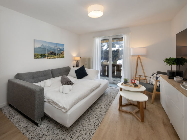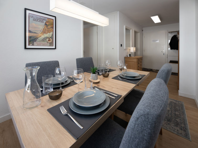 2 rom leilighet 70 m2, beliggenhet mot sør. Lys, fullstendig renovert i 2022, vakkert og koseligt møbler: stue/soverom med, 1 sovesoffa (160 cm, lengde 200 cm), digital TV. Utgang til balkongen, beliggenhet mot sør. 1 rom med 1 seng (180 cm lengde 200 cm), digital TV. Utgang til balkongen, beliggenhet mot sør. Kjøkken (stekeovn, oppvaskmaskin, 4 keramiske kokeplater, brødrister, vannkoker, mikrobølgeovn, elektrisk kaffemaskin, Internet(Nespresso), ekstra, raclettegrill (ost)). Bad/WC. Parkett. Beliggenhet mot sør. Hærlig utsikt av fjellene og dalen. Fasiliteter: hårføner. Internett (trådløs LAN [WLAN], gratis). Parkeringsplass plass nr BE38501. Vennligst merk: røykfri bolig. Brannslukkningsapparat, ingen heis.