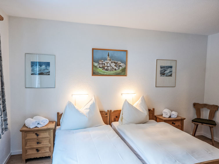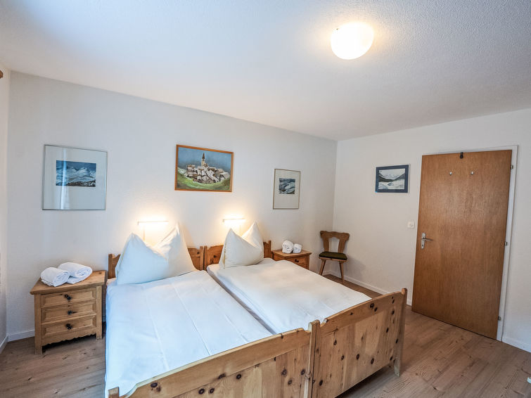 "Chesa Islas", 3 rom leilighet 80 m2 i 3rd etasje. Praktiskt og koseligt møbler: stue med, TV. Utgang til balkongen. 1 rom med 2 senger (90 cm lengde 190 cm). 1 dobblet rom med, 1 dobbeltseng (2 x 90 cm, lengde 190 cm). Kjøkken (stekeovn, oppvaskmaskin, 4 keramiske kokeplater, brødrister, vannkoker) med spisebord. Bad/dusj/WC. Oppvarming. Liten balkong 7 m2. Balkongmøbler. Vakker utsikt av fjellene og landskapet. Fasiliteter: strykejern, hårføner. Internett (trådløs LAN [WLAN], gratis). Parkeringsplass plass nr 14. Vennligst merk: velegnet for familier. Røykfri bolig.