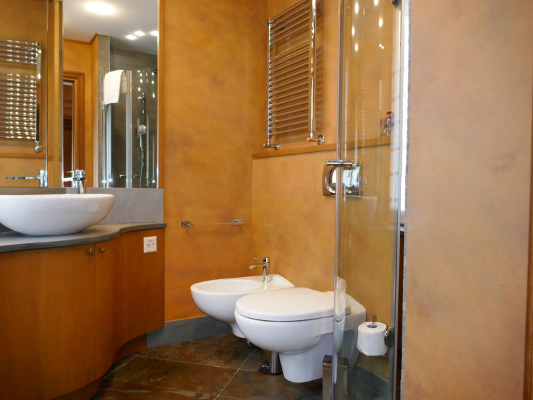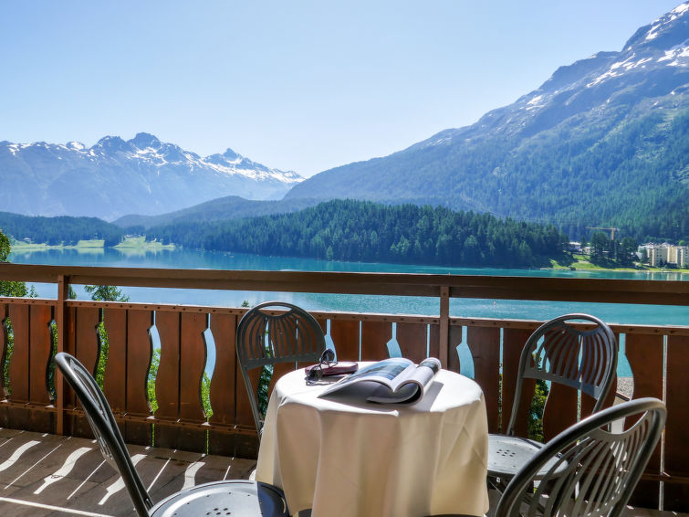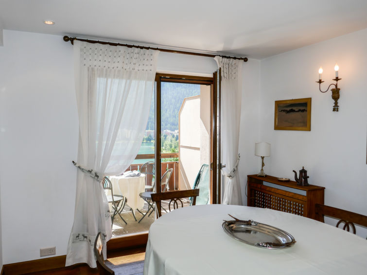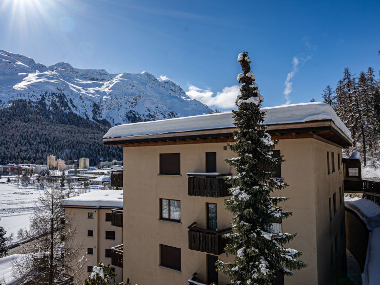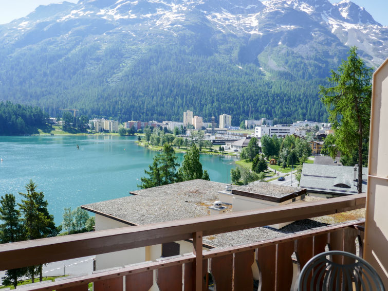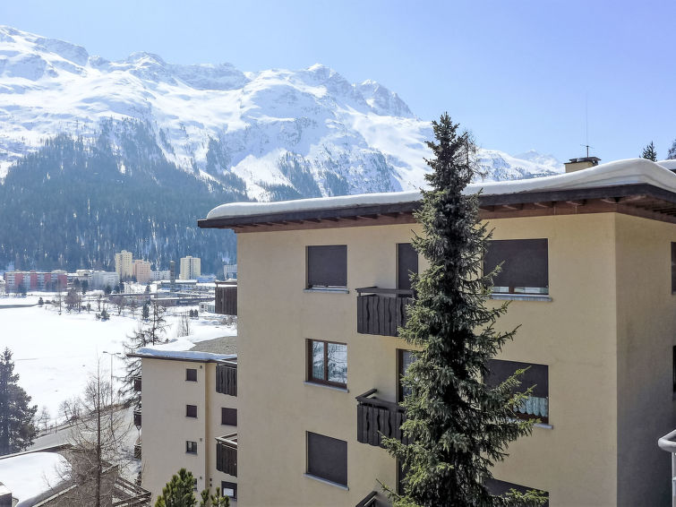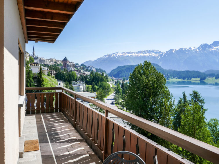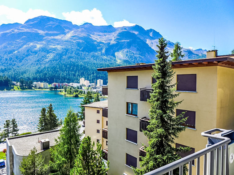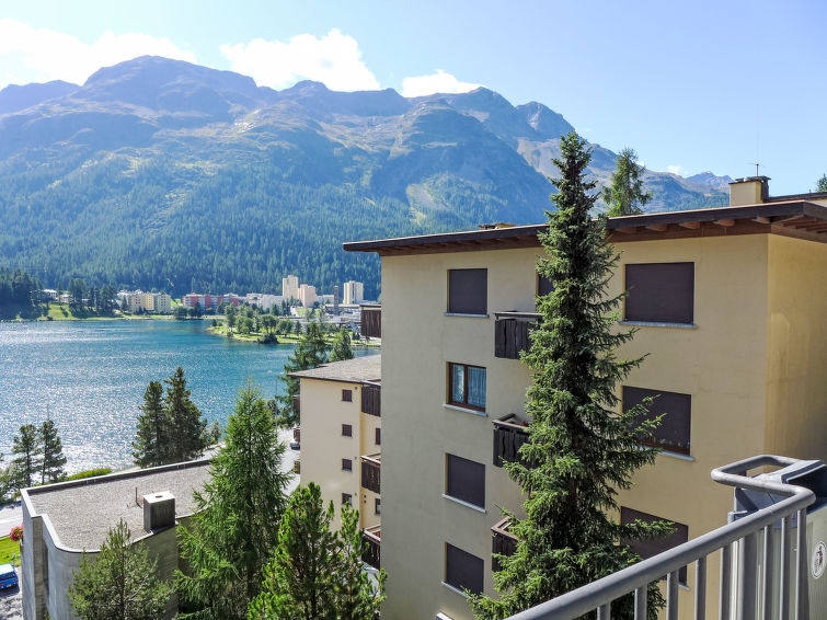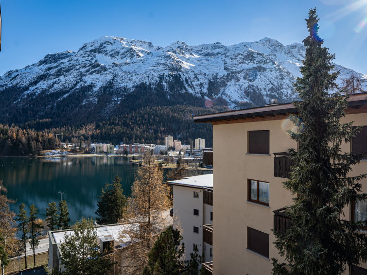 St. Moritz-Bad: Enkel flermannsbolig "Chesa Sonnalpine B", med 8 etasjer, bygget i 1968. I området 800 m fra sentrum av St.Moritz-Bad, 600 m fra sentrum av St.Moritz-Dorf, i en sentrale, travelt, solrikt posisjon, 50 m fra vannet 1 km fra skiområdet. I hbrukt: heis, sentralvarme. Offentlig parkeringshus på 600 m, offentlig parkering 50 m. Butikk, supermarked 260 m, restaurant 200 m, bakeri 500 m, café 700 m, sykkelutleie 800 m, bussholdeplass "St. Moritz Bad, Via Aruons" 180 m, togstasjon 1.5 km, svømmehall 1 km, rmalbad "Heilbadzentrum St. Moritz" 1.2 km, sjøen St. Moritzer See 50 m. Golfbane(18 hull) 7.7 km, tennis 1.5 km, tennisklubb 1.5 km, minigolf 1 km, rideskole 2.8 km, turstier fra hbrukt 100 m, sykkelvei 1 km, kabelbane 1.4 km, skiheis 1 km, skibakker 1.4 km, skiutleie 1 km, skibussholdeplass 180 m, skiskole 1 km, skiskole for barn 1 km, akebane 5.7 km, langrensløype 1 km, skøytebane 500 m, lekeplass 1.3 km. Attraksjoner i nærheten: Segantini Museum 1.2 km, Engadiner Museum 120 m, Mili Weber-Haus 2 km, Olympia Bob Run mit Museum 1.7 km, Nietzsche Museum in Sils-Maria 10 km. Velkjente skiområder: Corviglia Piz Nair 1 km, Corvatsch - Furtschellas 7 km, Diavolezza - Lagalb 19 km. Velkjente innsjøer: St. Moritzer See 50 m, Silvaplaner See 5.7 km, Silser See 10 km. Turstier Stazerwald & Stazersee, Corviglia Piz Nair, Muottas Muragl. Vennligst merk: Av- og pålastning av bagasje er mulig ved feriebol. Nøkkelleveringen skjer i Interhome i St. Moritz Bad. Det er flere lignende leiligheter i samme hus.
