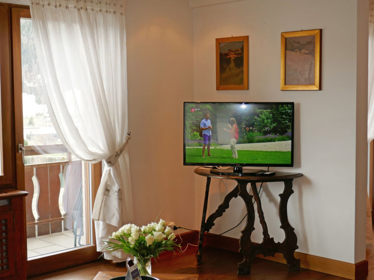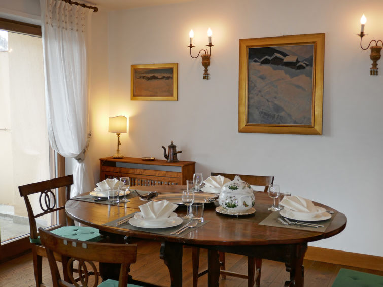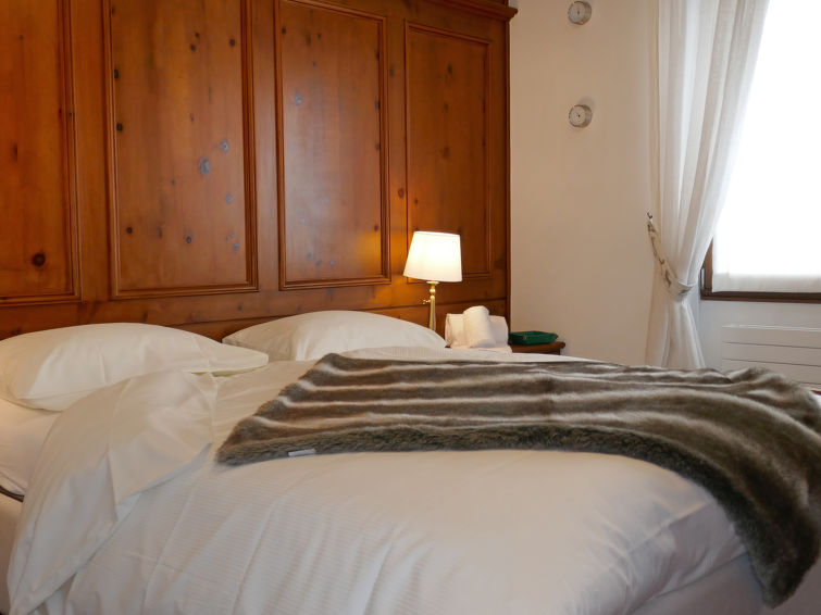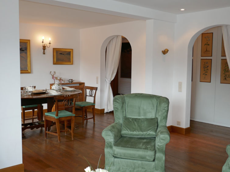 "Chesa Sonnalpine B 48", 3 rom leilighet 95 m2, i toppetasjen. Lys, fullstendig renovert i 2012, smakfullt og stilfullt møbler: stue/spisestue med, spisebord og TV (flatskjerms TV). Utgang til balkongen, beliggenhet mot sør. 1 dobblet rom med, 1 dobbeltseng (1 x 180 cm, lengde 200 cm), bad/dusj/bidèt/WC. 1 rom med 2 senger (90 cm lengde 200 cm), dusj/bidèt/WC. Kjøkken (ovn, oppvaskmaskin, 4 induksjonskomfyr, frys, elektrisk kaffemaskin, Internet(Nespresso), ekstra). Utgang til balkongen, beliggenhet mot nord-øst. Parkett. Balkongmøbler, liggestoler (2). Panoramautsikt av vannet, fjellene, landskapet og området. Fasiliteter: hårføner. Internett (trådløs LAN [WLAN], gratis). Garasje plass nr 48 på tomten, høyde 185 cm, bredde 180 cm. Vennligst merk: velegnet for familier. Røykfri leilighet, røykfritt hus, parkeringsplass bare for små biler. Kjæledyr / hund tillatt 1 kjæledyr / hund tillatt.