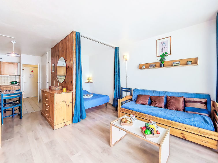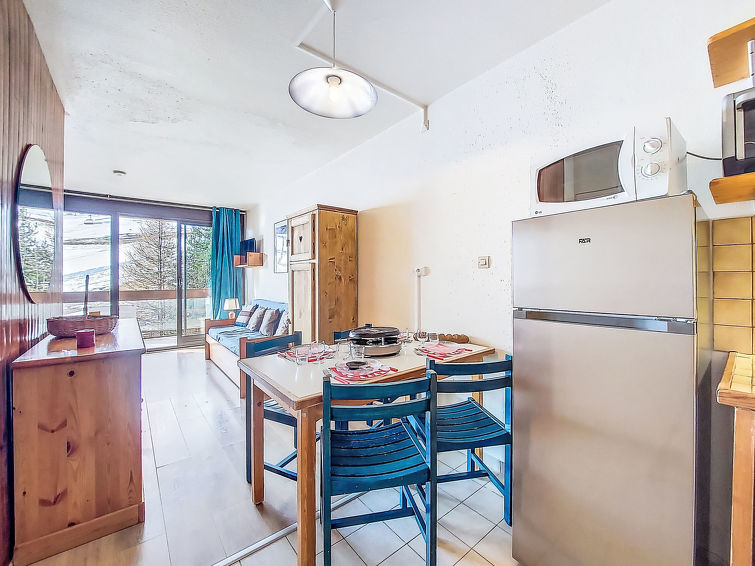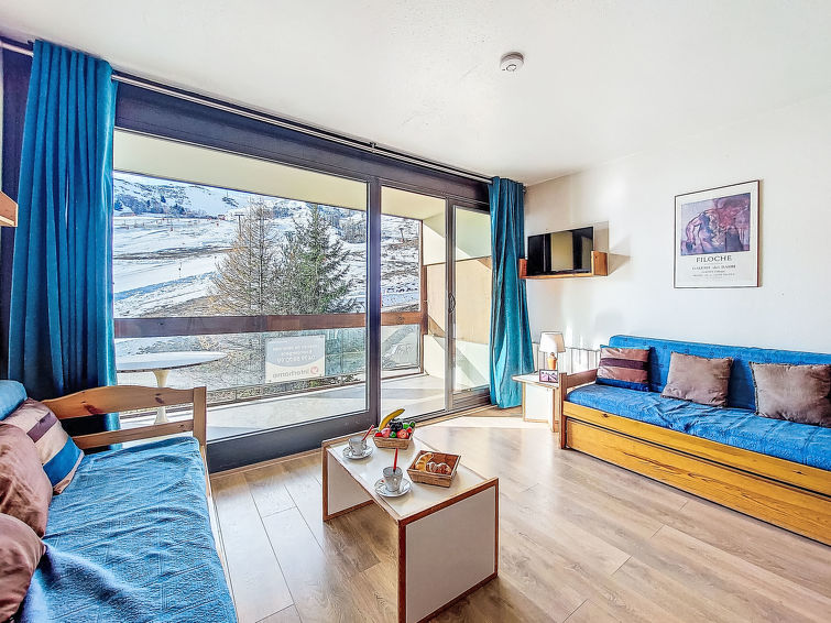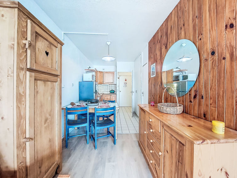 1 rom etromsleilighet 35 m2 i 1st etasje, beliggenhet mot sør. Enkelt og praktiskt møbler: stue/spisestue med 2 senger (80 cm lengde 190 cm), TV (flatskjerms TV). Utgang til balkongen, beliggenhet mot sør. Sovealkove med forheng med, 1 dobbeltseng (140 cm, lengde 190 cm). Kjøkkenkrok (2 kokeplater, stekeovn, brødrister, mikrobølgeovn, elektrisk kaffemaskin, raclettegrill). Bad, sep. WC. El-oppvarming. Parkett. Balkong 8 m2, beliggenhet mot sør. Balkongmøbler, liggestoler (2). Utsikt av fjellene og skibakkene. Fasiliteter: hårføner. Internett (trådløs LAN [WLAN], ekstra). Vennligst merk: røykfri bolig. Max kjæledyr / hund tillatt 1 kjæledyr / hund tillatt. Røykvarsler. I stedet for et separat soverom er de enkelte soveplassene plassert i et åpent område (hems, alkove osv.). Tilbud fra en privatperson i henhold til art. 155, IV av CGI.
