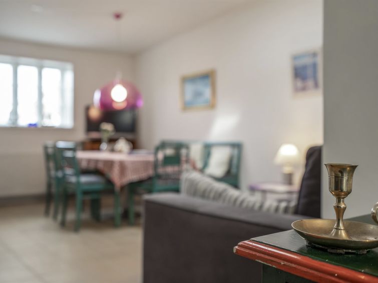 "Delfina" - 250m from the sea in NW Jutland", leilighet 35 m2. Passer for 2 voksne. Stue med, 1 dobbel sovesoffa, TV, radio, CD-spiller og DVD. Kjøkken (stekeovn, 4 keramiske kokeplater, mikrobølgeovn). Dusj/WC. Terrasse 10 m2. Grill. Fasiliteter: vaskemaskin. Internett (trådløs LAN [WLAN]). Vennligst merk: røykfri bolig.