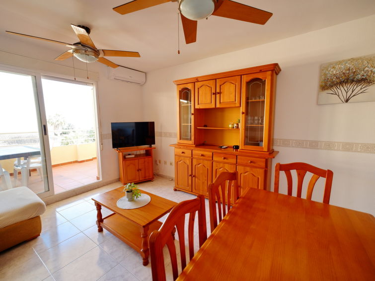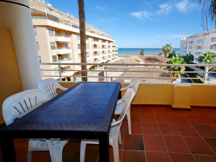 Koselig, komfortabel leilighetshus "Dianium". I området 200 m fra sentrum av Dénia, i en sentrale, roligt posisjon, 200 m fra sjøen, 200 m fra stranden. Fellesbruk: hage med plen og trær, 1 badebasseng nyre-formet (20 x 15 m, dybde 40- 210 cm dyp, Sesongåpent: 01.Jan. - 31.Des.) med innbygdetrapper. Barnebasseng, utendørs dusj. I huset: heis. Overdekket, parkering. Butikk, daglivarehandel 80 m, supermarked 350 m, restaurant, bar, café 100 m, sandstrand "Les Marines" 200 m. Sporthavn, surfeskole, seileskole 400 m. Eieren godtar ikke noen ungdomsgrupper.