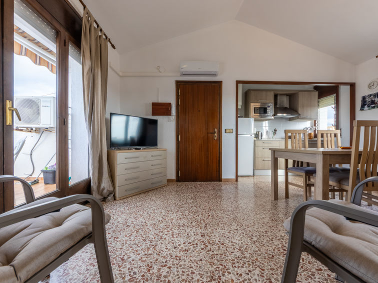 "Drassanes III", 3 rom leilighet 42 m2 i 3rd etasje. Passer for 4 voksne. Delvis renovert i 2017, praktiskt og koseligt møbler: stue/spisestue med, digital TV og air-conditioning. Utgang til terrassen. 2 rom, hvert rom med, 1 dobbeltseng (135 cm, lengde 180 cm). Åpent kjøkken (stekeovn, 2 keramiske kokeplater, brødrister, vannkoker, mikrobølgeovn, elektrisk kaffemaskin). Dusj/WC. Oppvarmingsalternativ. Terrasse. Terrassemøbler. God utsikt av havet og landskapet. Fasiliteter: strykejern, hårføner. Internett (trådløs LAN [WLAN], gratis). Parkeringsplass (overdekt, 1 Bil) ved hbrukt. Vennligst merk: velegnet for familier. Røykfri bolig. HUTT012600
