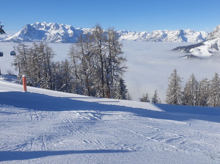 Koselig flermannsbolig "Edelweiss". I utkanten, i en solrikt posisjon, 1.7 km fra skiområdet, i det grønne. Fellesbruk: hage. I huset: badstu, skirom, sentralvarme, vaskemaskin (for felles bruk). Daglivarehandel 1.3 km, restaurant 700 m, badevann "Wengersee" 1.6 km. Tennis 1.4 km, gondolheis 1.7 km, skisportenanlegg 1.5 km, skibussholdeplass 70 m, skiskole 1.6 km, langrensløype 50 m, skøytebane 1.6 km. Attraksjoner i nærheten: Burg Hohenwerfen 11 km, Eisriesenwelt 15 km. Vennligst merk: Det er flere lignende leiligheter i samme hus.