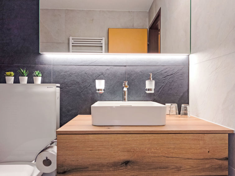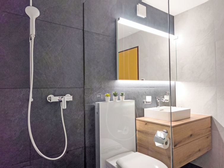 "Apt. A /425", 2 rom leilighet 70 m2 i 4th etasje. Delvis, med skråtak, komfortabelt og koseligt møbler: stue/spisestue med, 2 neddragbare klappsenger (90 cm, lengde 200 cm), kabel-TV, flatskjerms TV, radio, CD-spiller og DVD. 1 rom med 2 senger (90 cm lengde 200 cm). Kjøkken (3 kokeplater, stekeovn, brødrister, vannkoker, mikrobølgeovn, elektrisk kaffemaskin, Internet(Nespresso), ekstra (ost)). Sep. WC, bad/dusj/WC. Balkong. Balkongmøbler. Meget vakker panoramautsikt av fjellene. Fasiliteter: hårføner. Internett (trådløs LAN [WLAN], gratis). Vennligst merk: velegnet for familier. Røykfri bolig.